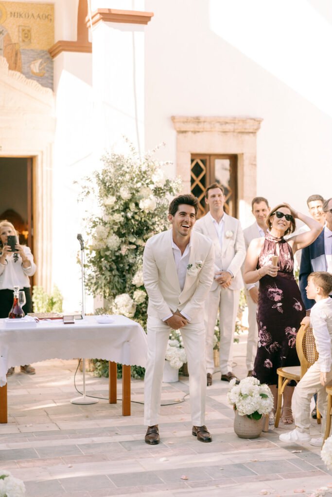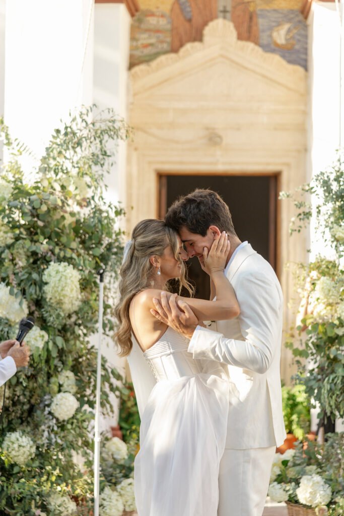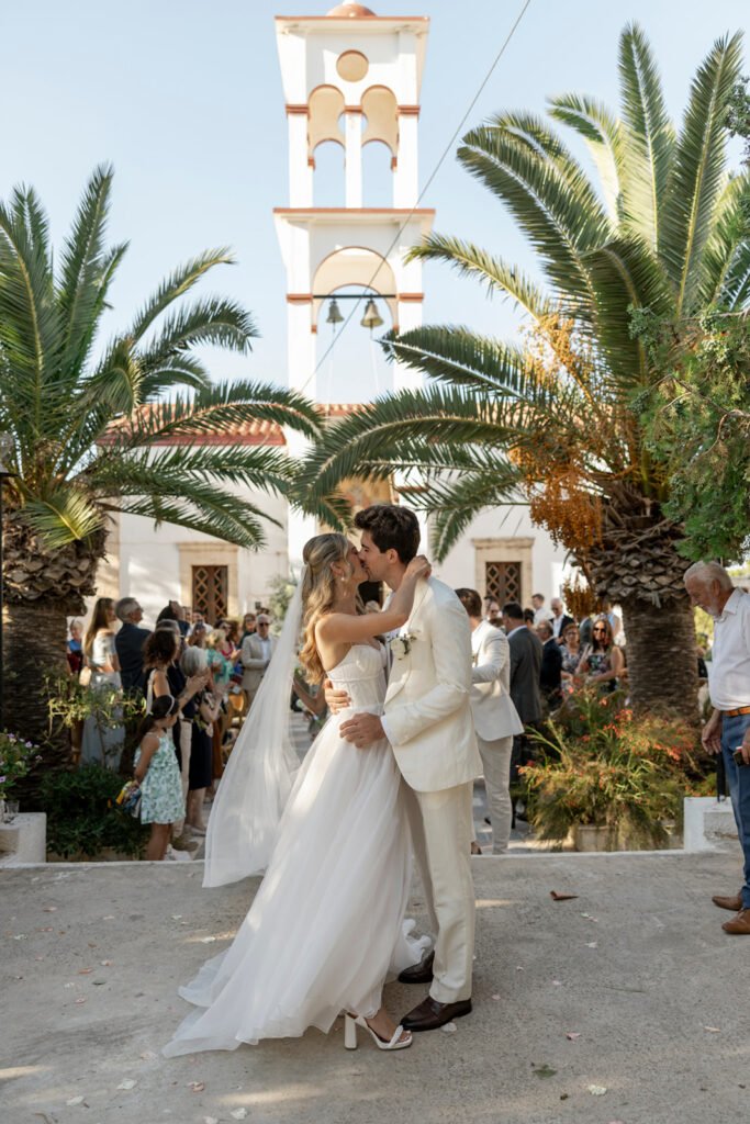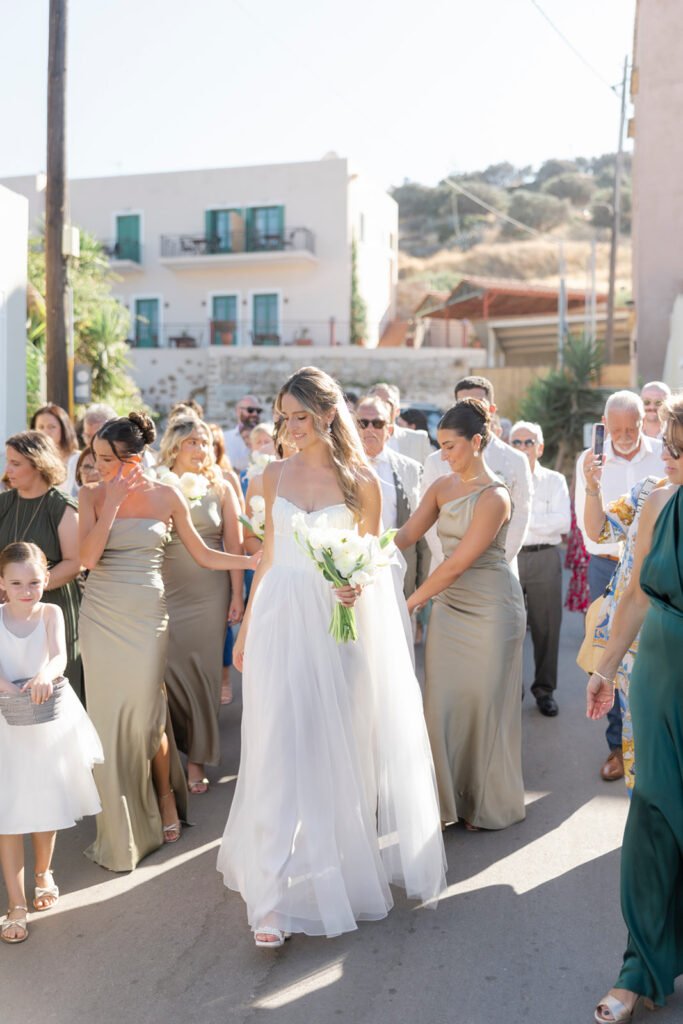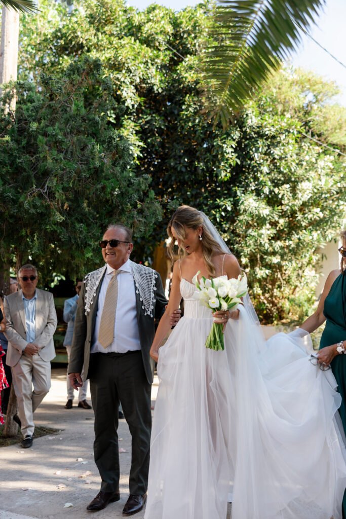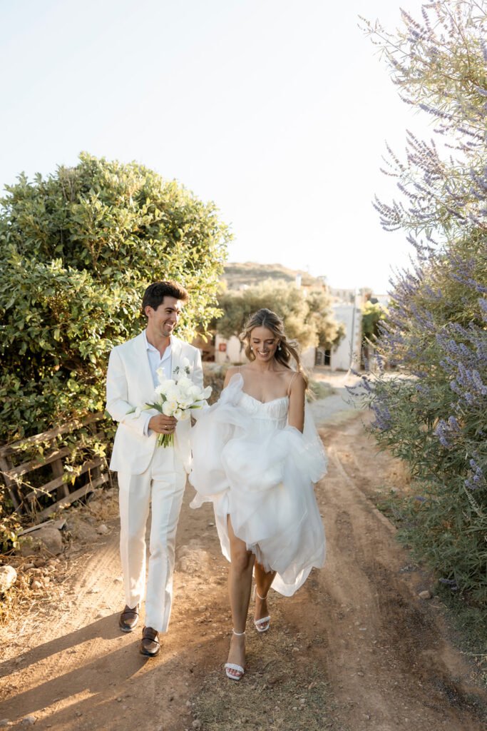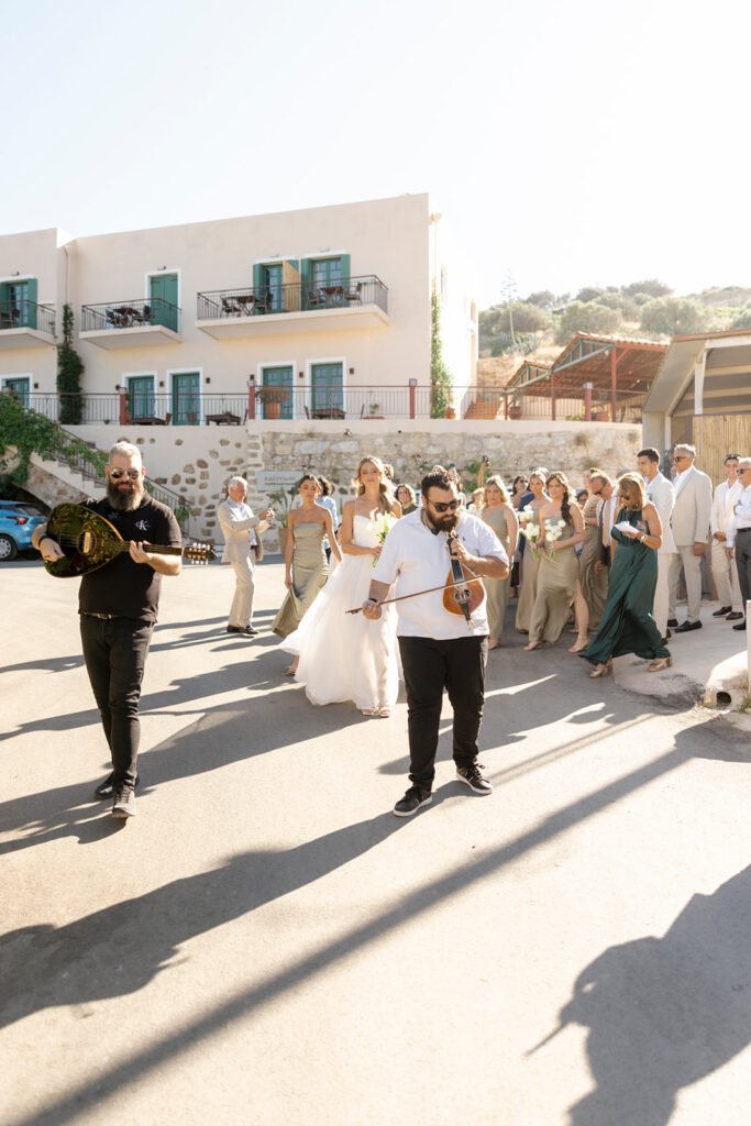The day began with a traditional Orthodox wedding ceremony, held outdoors near a charming Cretan church. The bride walked down the aisle accompanied by the soulful sounds of traditional Cretan instruments, including the lyra and the laouto. The live music added an emotional and personal touch to the ceremony, blending seamlessly with the natural beauty of the surroundings.