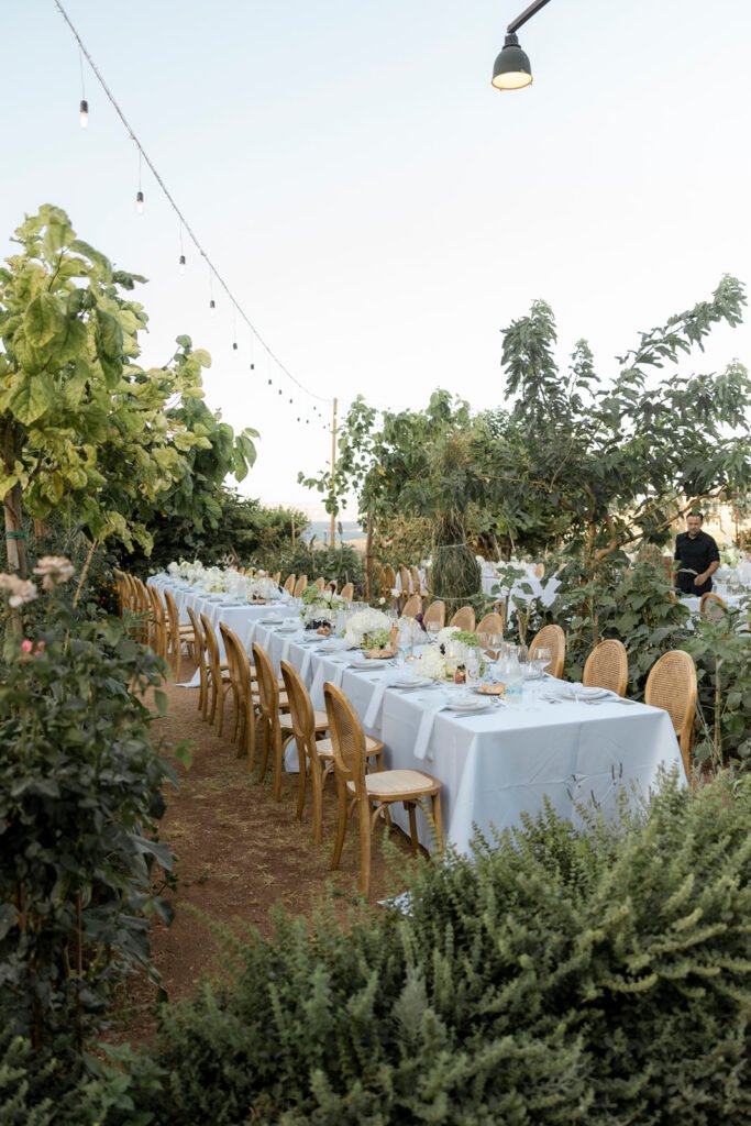 Farm wedding decor in Crete often focuses on natural elements: olive branches, local fruits, wildflowers, and wooden details. This not only celebrates the island’s beauty but also creates a warm and welcoming environment for guests. For Deahnne and Alex, the decor perfectly balanced tradition with contemporary elegance.