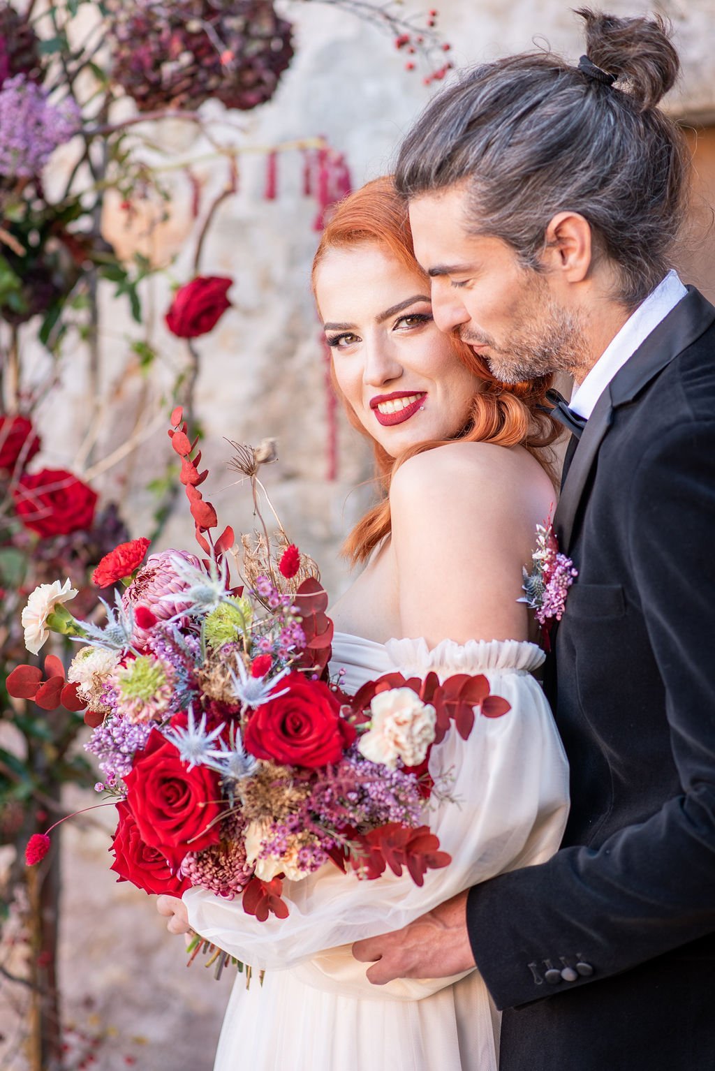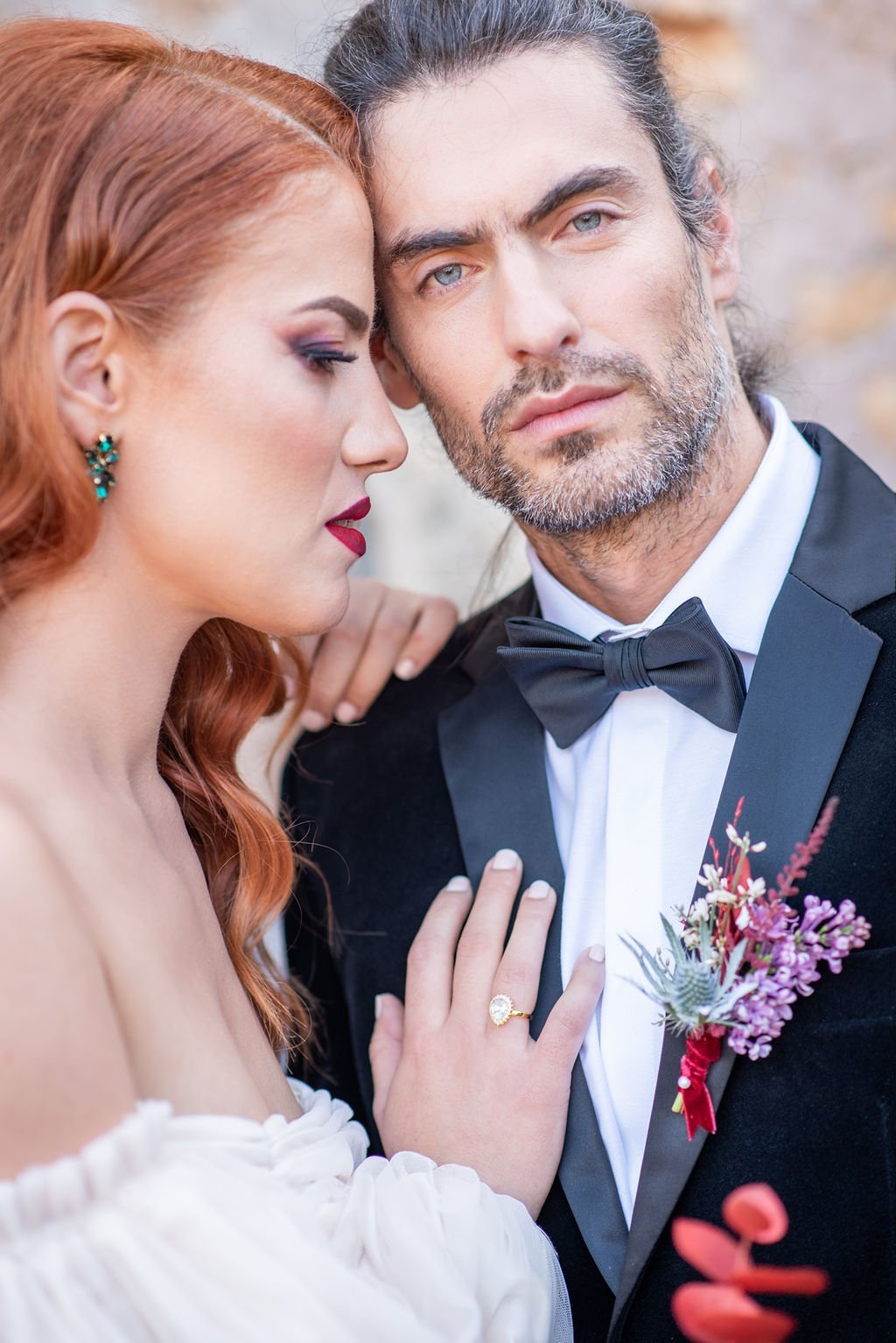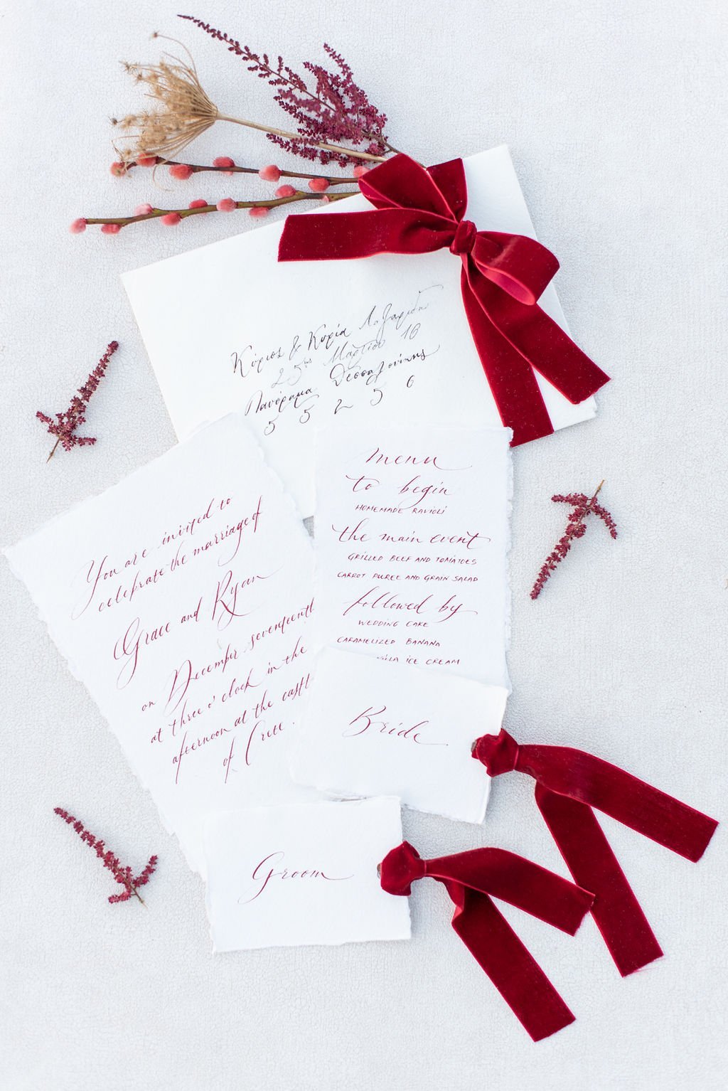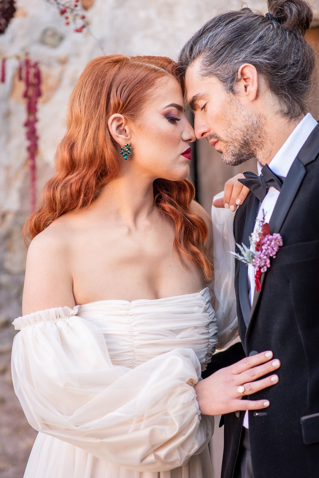 This winter wedding styled shoot took place last December on the island of Crete and was designed to showcase the quiet magic and romance of the off-season. Set within a breathtaking 15th-century venue, the concept embraced history, warmth, and atmosphere, transforming ancient stone walls and grand halls into an intimate winter haven. Flickering candles filled the space with soft light, while a dramatic statement chandelier suspended above the dining table became the heart of the design—its glow reflecting beautifully against the historic architecture and creating a scene that felt both timeless and cinematic. The venue itself, Metohi Istoria, offered the perfect canvas where past and present merged seamlessly into a deeply romantic setting.