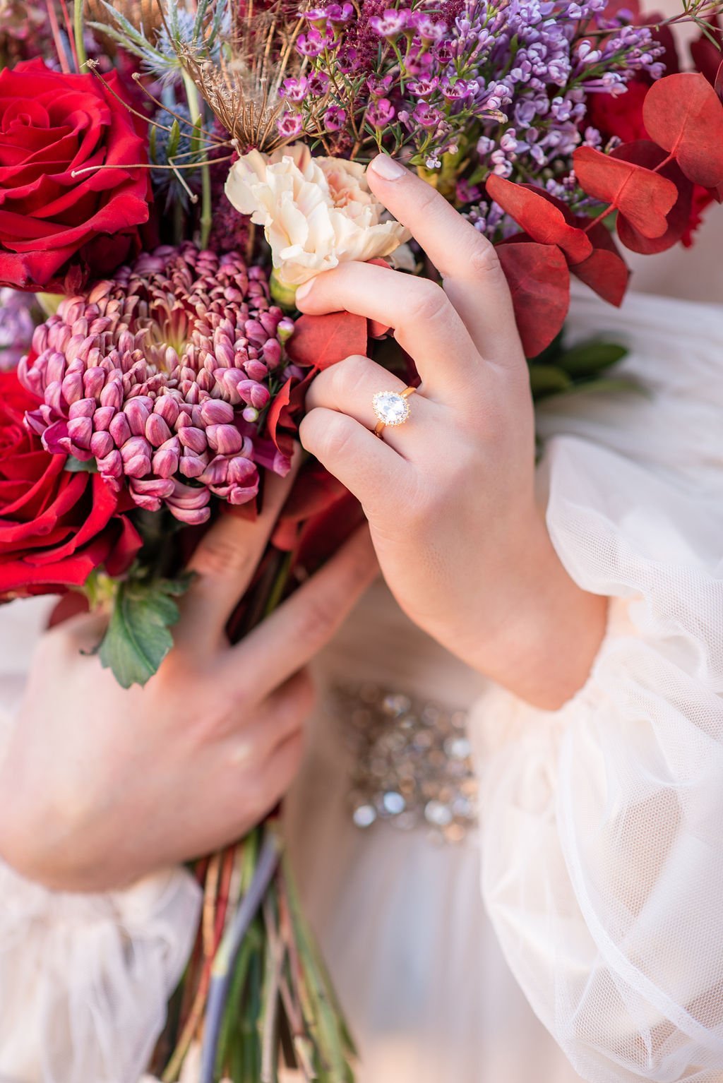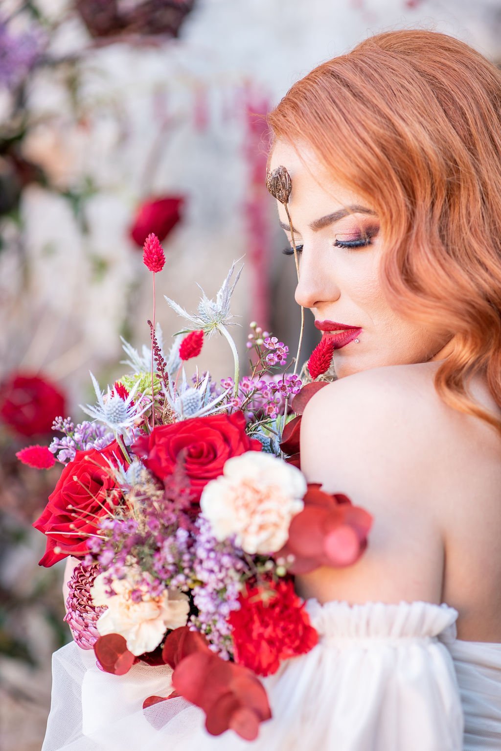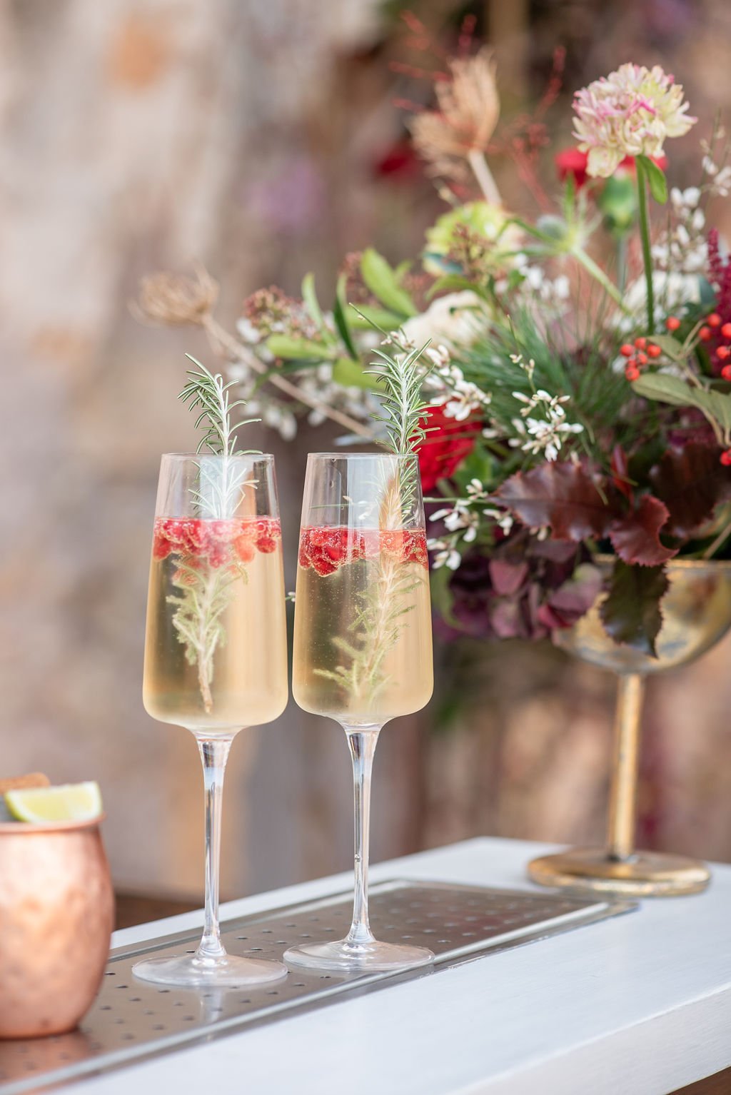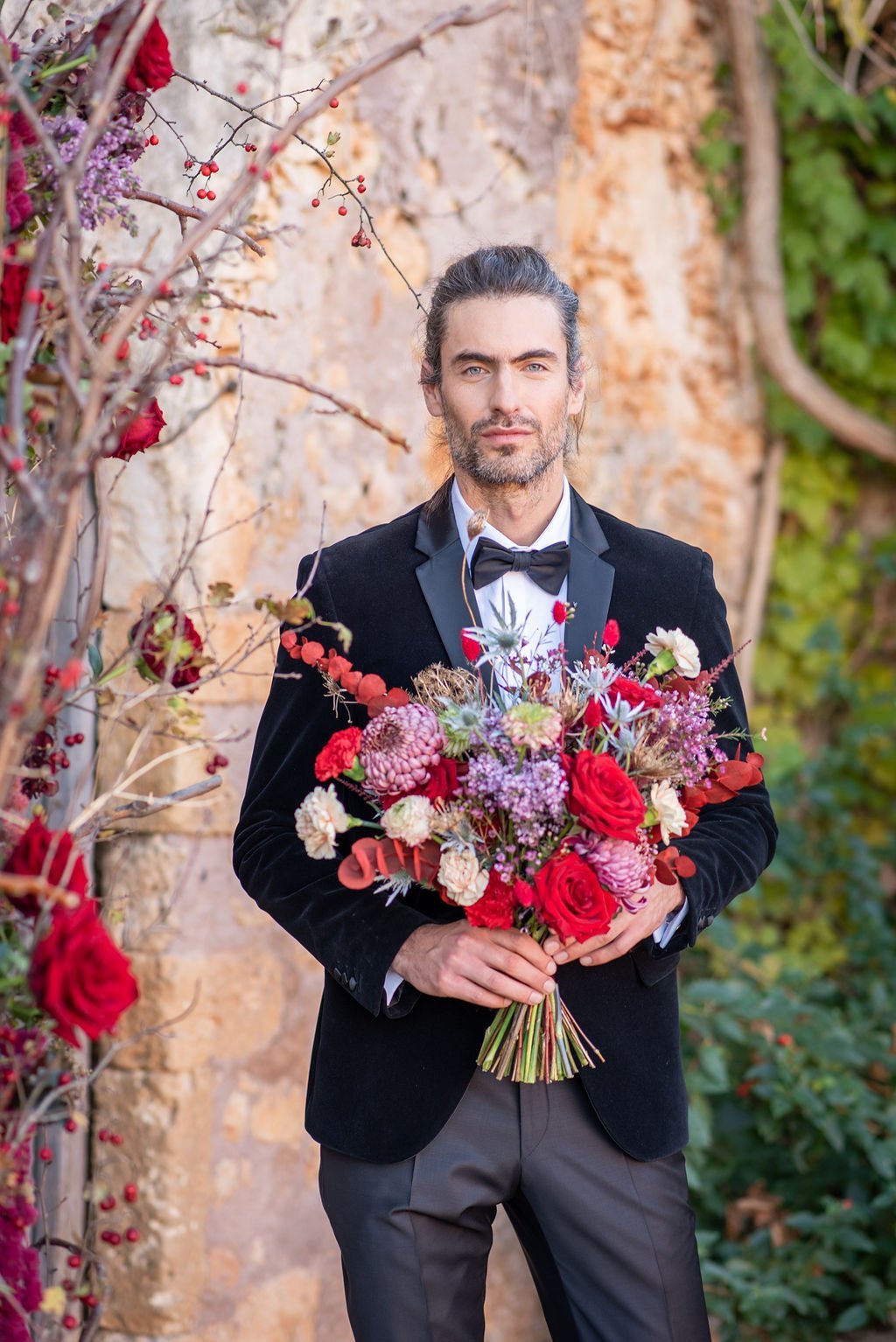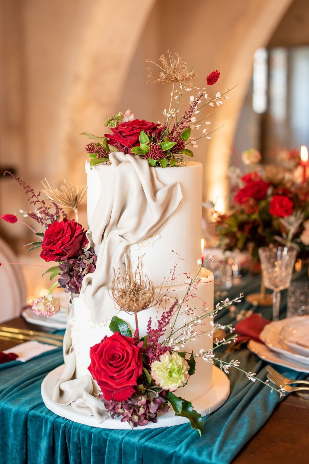 The design was completed with a rich, elegant palette of burgundy and deep green, chosen to evoke warmth and seasonal luxury. Velvet table runners and ribbons added texture and depth, while lush florals softened the grandeur of the space and balanced its architectural strength. Every element—from the layered candlelight to the tactile fabrics—was intentionally curated to create an immersive winter atmosphere that felt cozy yet refined. Thoughtfully planned and styled by The 25 Project, the shoot stands as inspiration for couples dreaming of a winter wedding that feels atmospheric, sophisticated, and unforgettable, proving that colder months can be just as magical as summer celebrations.