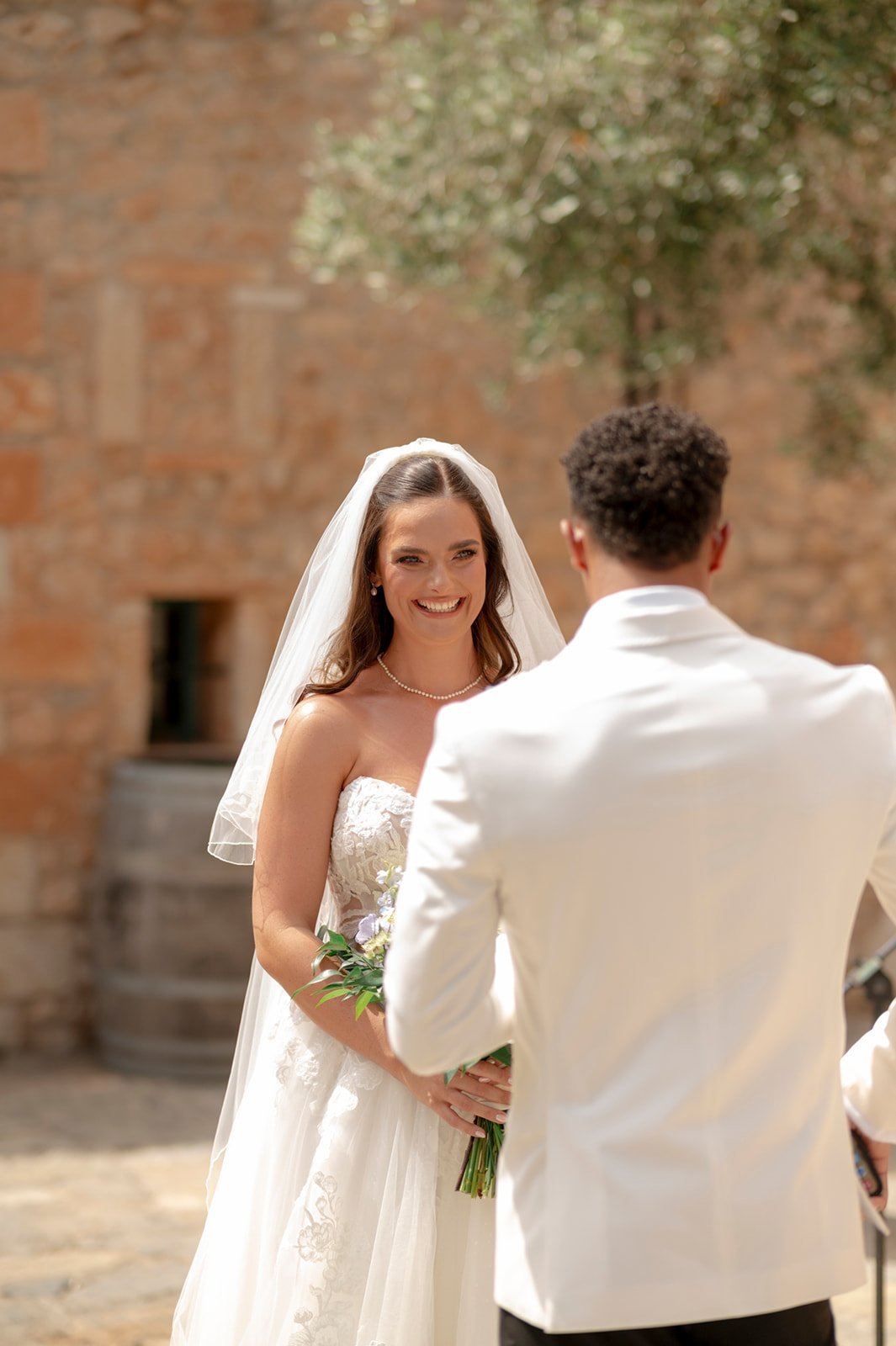 Tucked away in the hills above Rethymno, Agreco Farm is one of the most magical venues on the island of Crete. With its panoramic views, traditional architecture, and lush olive groves, it’s a dream location for couples seeking a truly authentic wedding in Greece. But Agreco is more than just beautiful, it has a soul. It’s rustic yet refined, deeply connected to nature, and full of charm. No wonder Eleanor and Jake chose it for their destination wedding.