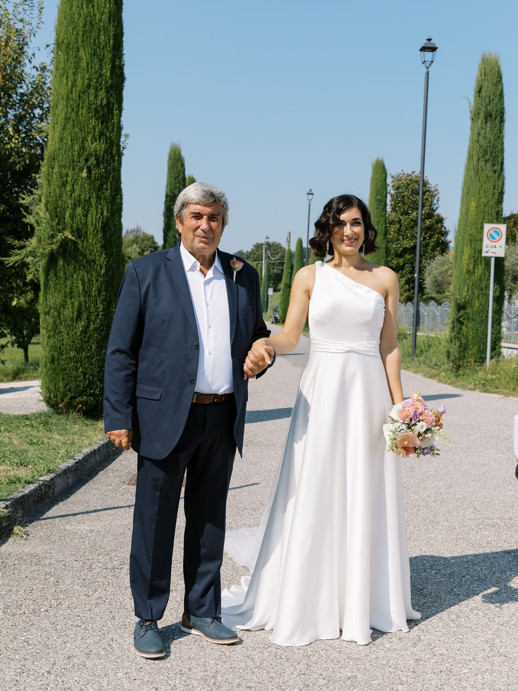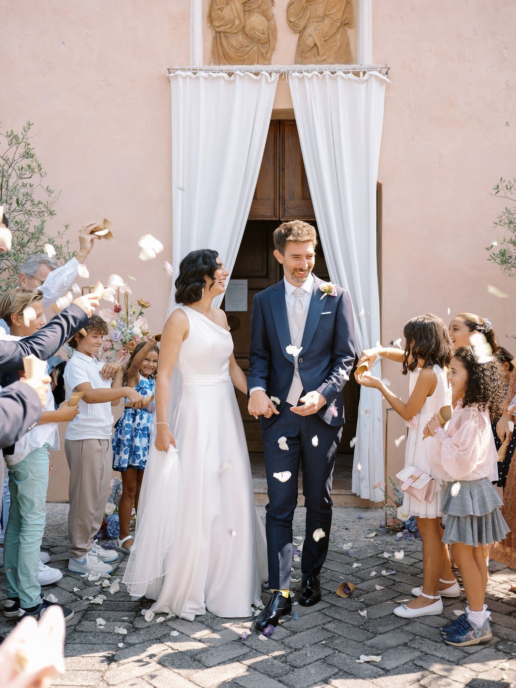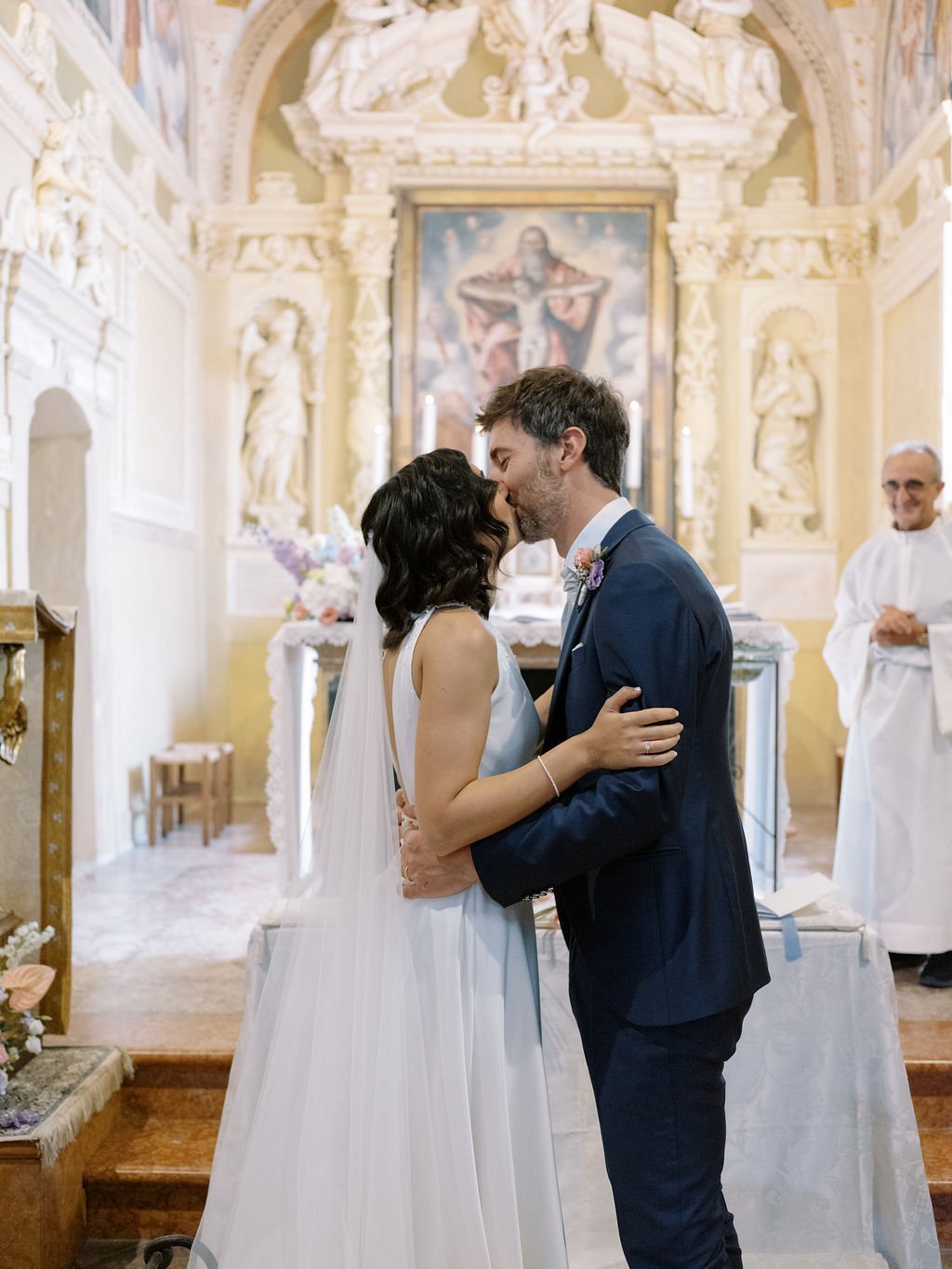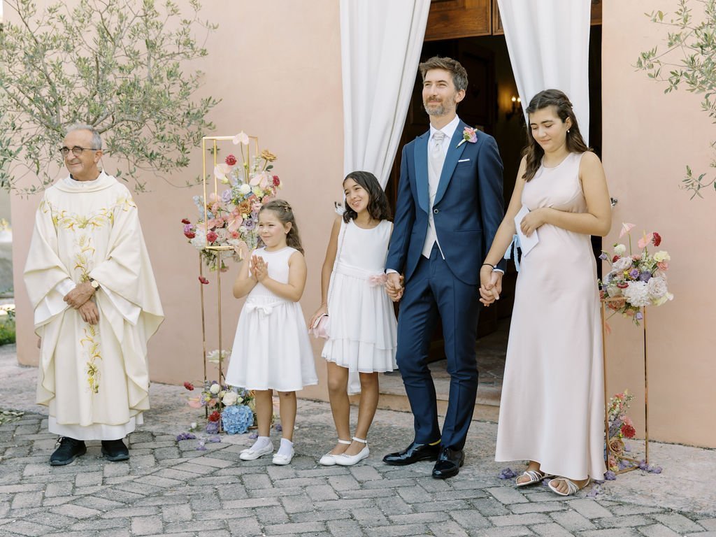 Love knows no borders, and Eleni and Davide’s wedding was a beautiful celebration of two cultures coming together. Eleni, originally from Greece, and Davide, from Italy, chose to say “I do” in a breathtaking Italian setting, surrounded by family, friends, and their two children. Their day began with a heartfelt Catholic ceremony held in an elegant church adorned with floral arrangements, where emotion filled the space as Eleni walked down the aisle and Davide watched with tears in his eyes. With their loved ones witnessing their vows, the ceremony felt deeply intimate and meaningful, perfectly reflecting the union of their lives and heritage.
