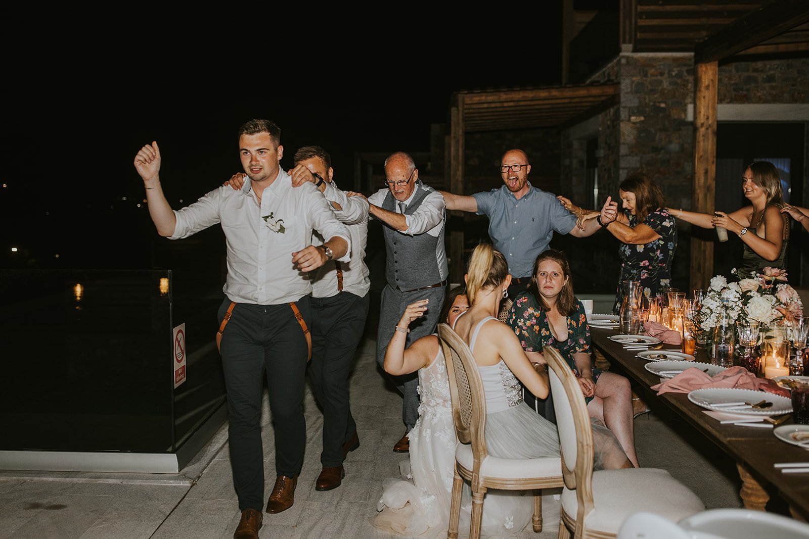 After the ceremony, guests returned to Mantillari Estate, where the villa had been transformed into a refined yet romantic reception space filled with white florals, candlelight, and soft overhead lighting that mimicked a starlit sky. Personalized menus and name cards added thoughtful touches, while the warm glow of the décor created an inviting, intimate atmosphere for dinner and celebration. Planned and coordinated by The 25 Project, the evening flowed effortlessly from heartfelt toasts to joyful dancing, blending tradition with modern elegance in a way that felt completely personal to Roula and Chris. From sacred church vows to a chic garden party under the lights, their wedding was a seamless, love-filled tribute to culture, family, and the magic of saying “I do” in Crete.
