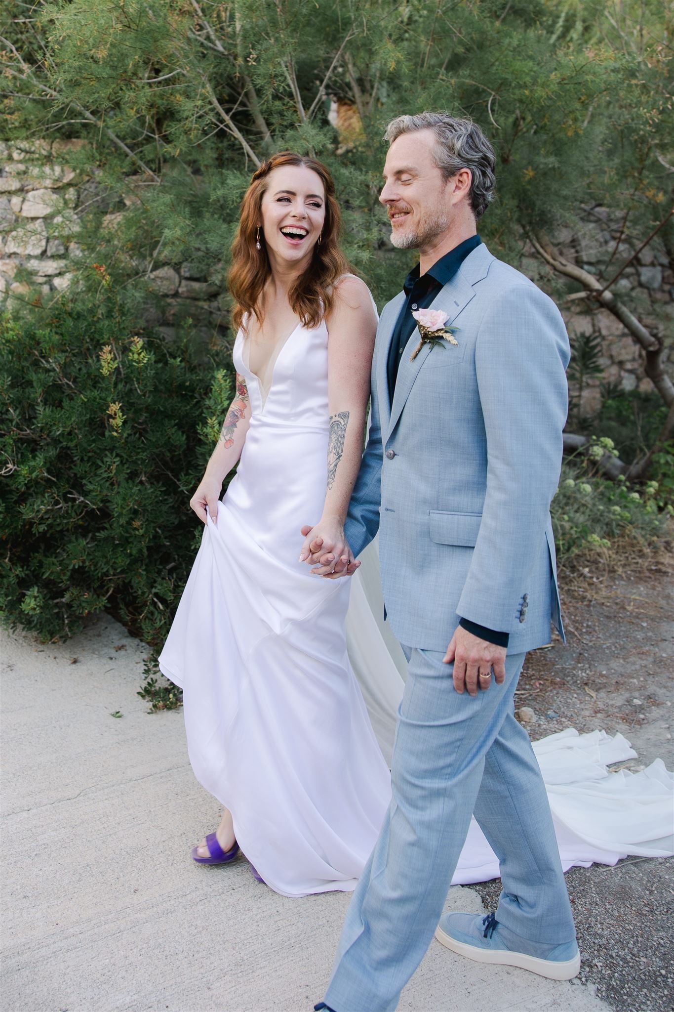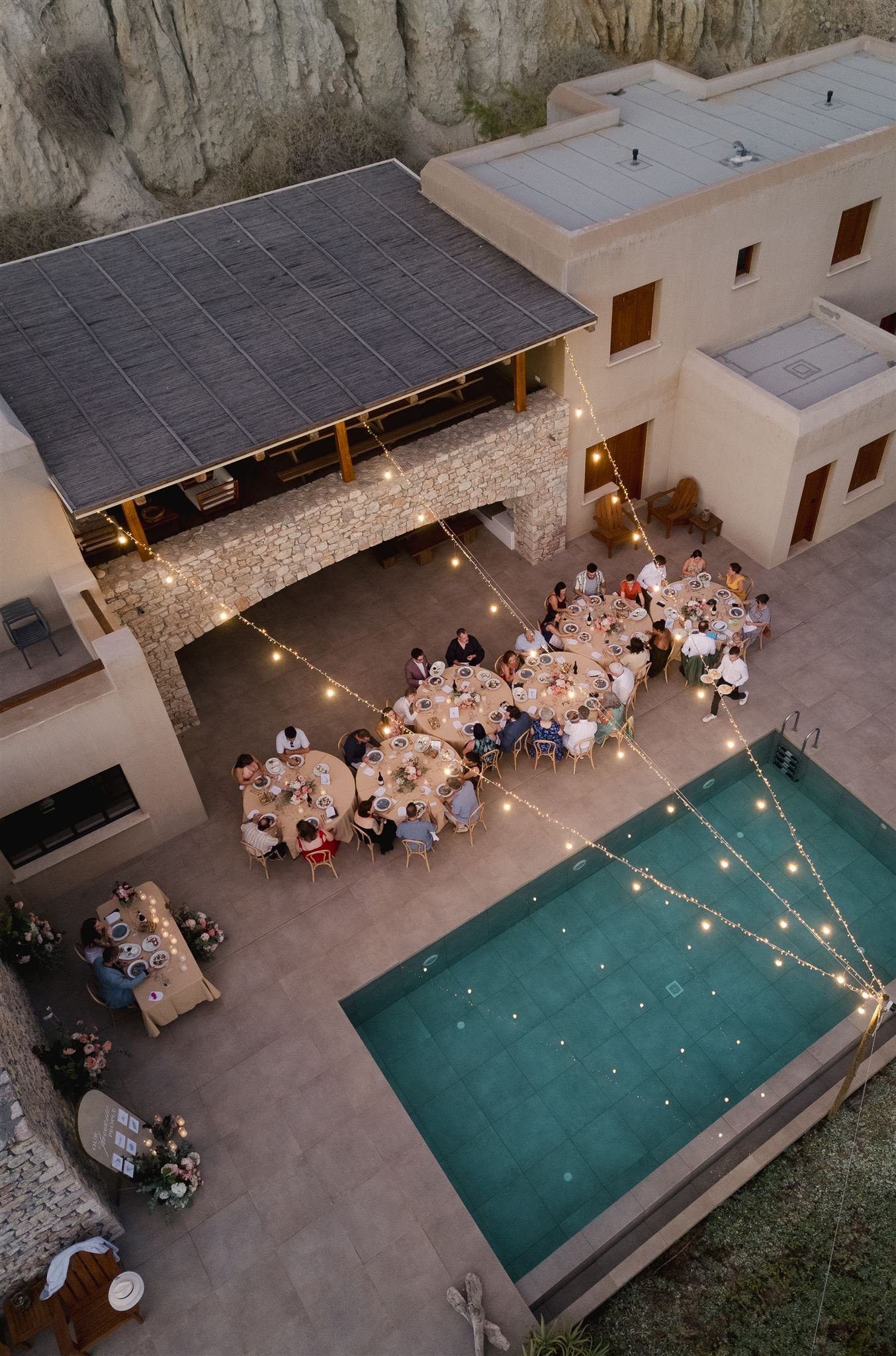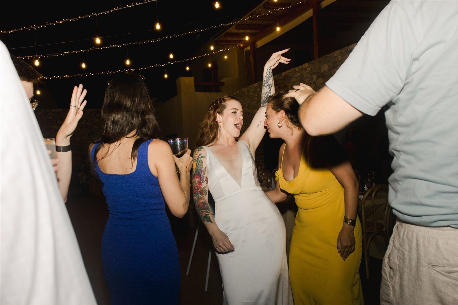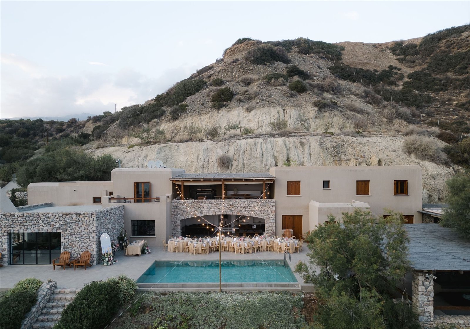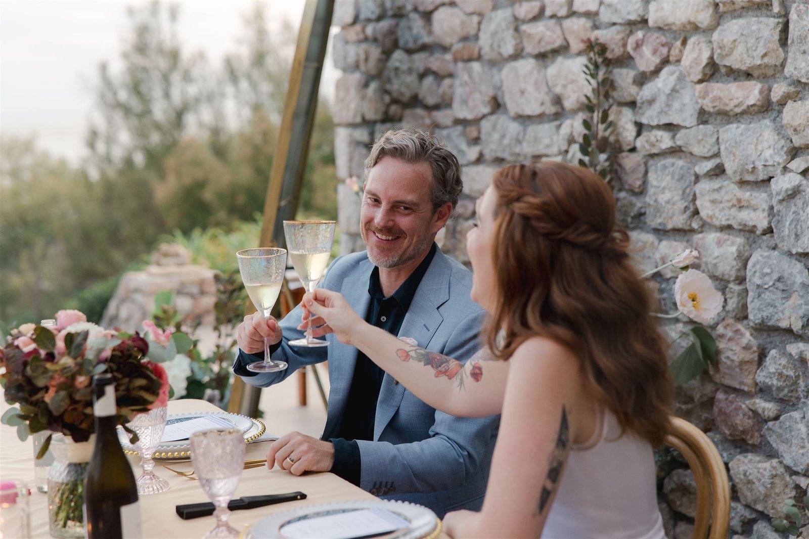 As the sun dipped lower, guests enjoyed a relaxed cocktail hour while Laura and Andrew slipped away for a romantic couple’s session along the coastline, capturing timeless moments in the soft golden light. The evening continued with a poolside dinner reception, where round tables dressed in vibrant pink, purple, and blue florals glowed under candlelight and fairy lights, setting a dreamy Mediterranean scene. A delicious feast, heartfelt laughter, and warm conversations filled the night, before the celebration truly came alive with handcrafted cocktails, music, and dancing under the stars. It was a joyful, unforgettable destination wedding in Crete, perfectly reflecting Laura and Andrew’s love—intimate, emotional, and full of magic.
