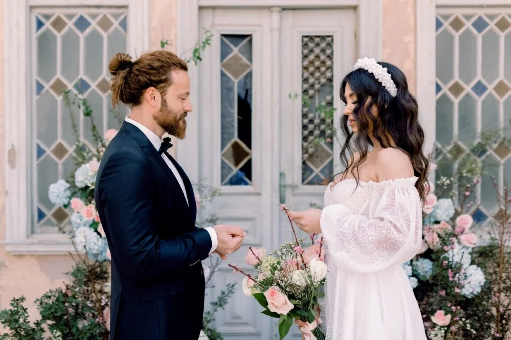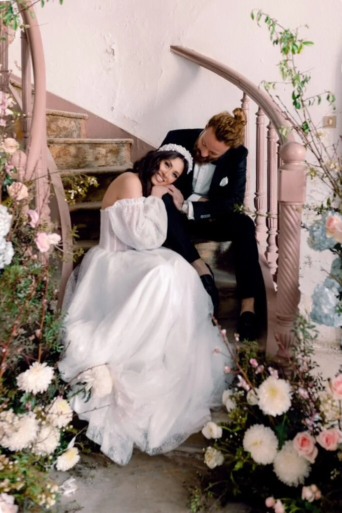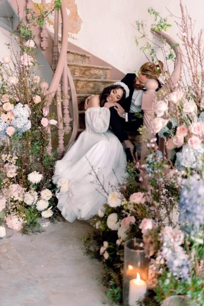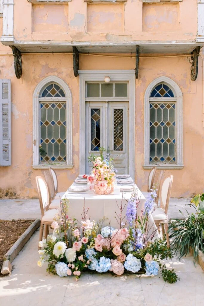 It might sound weird at first, but trust me, this love story is only made more epic with the dilapidated location! An abandoned building that was wonderfully transformed , with its impressive decoration and flowers in pastel shades.