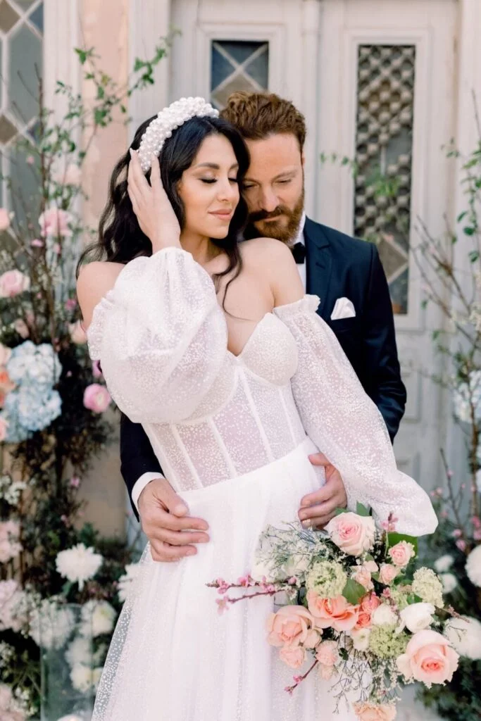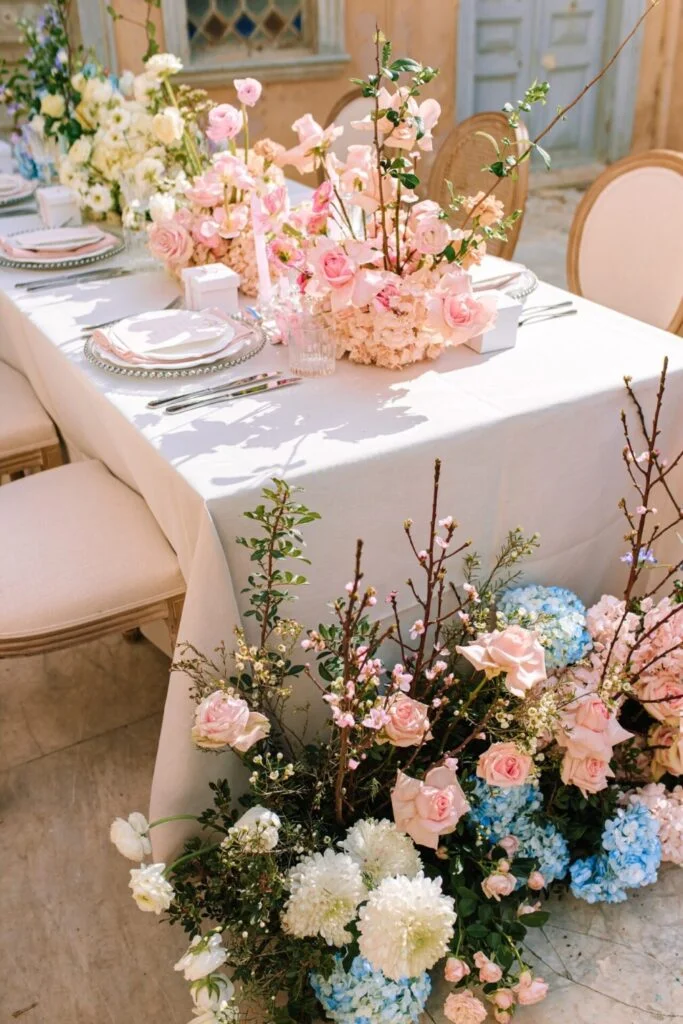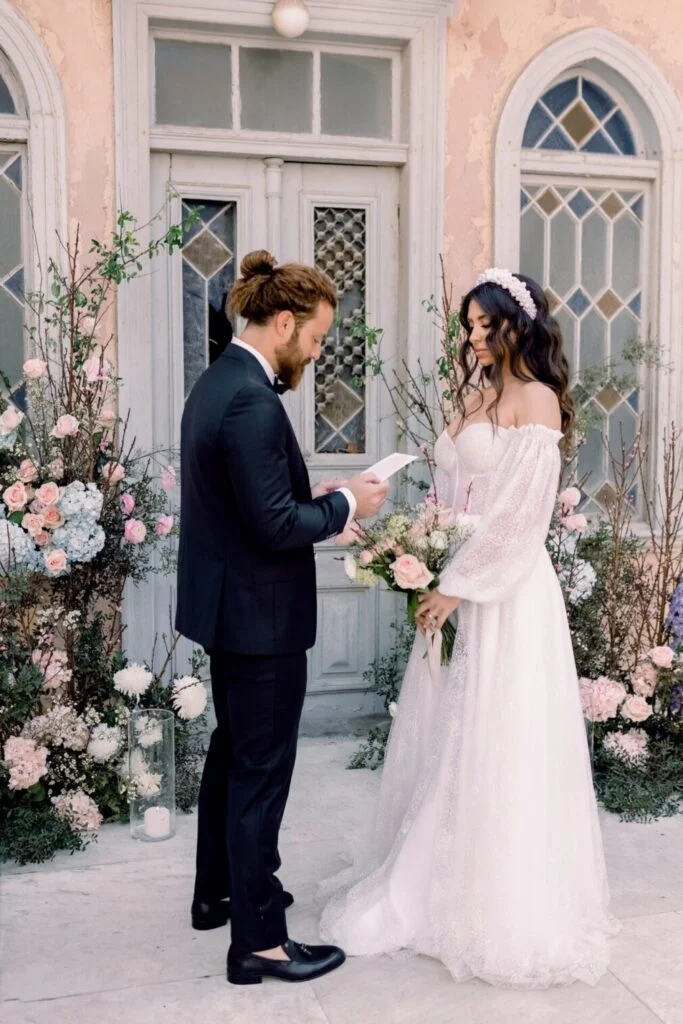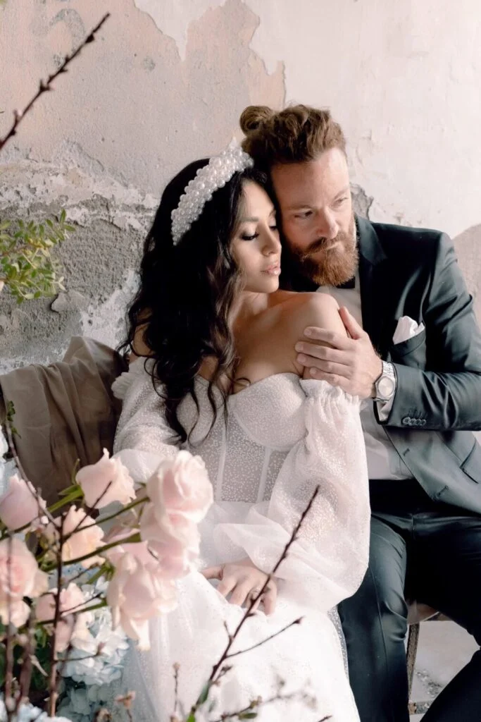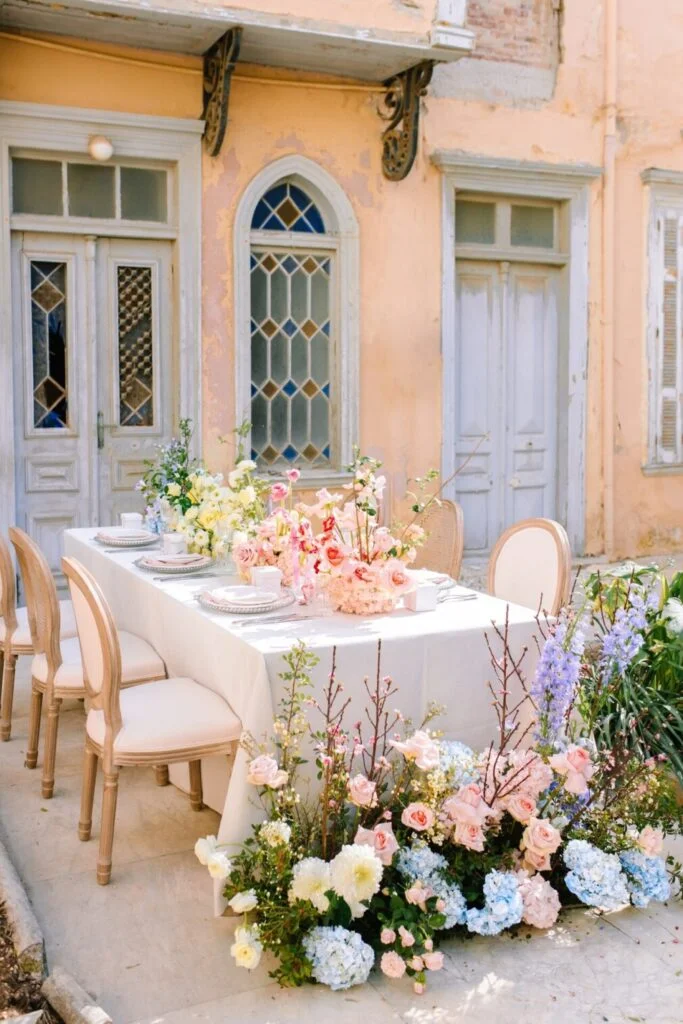 It might sound weird at first, but trust me, this love story is only made more epic with the dilapidated location! An abandoned building that was wonderfully transformed , with its impressive decoration and flowers in pastel shades.