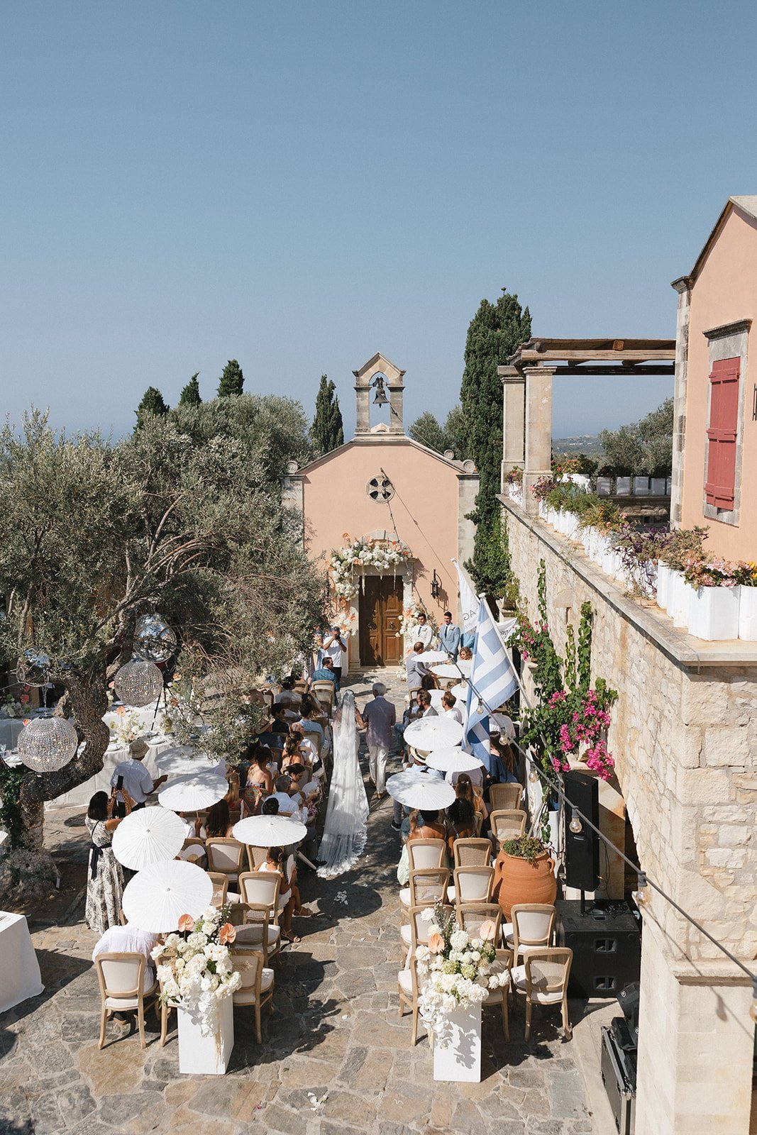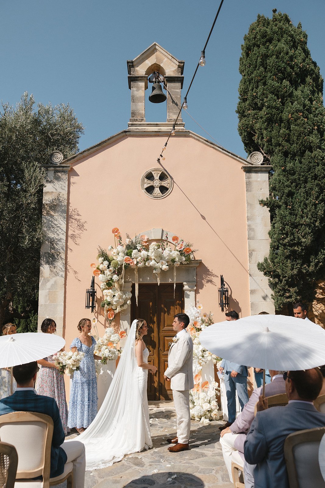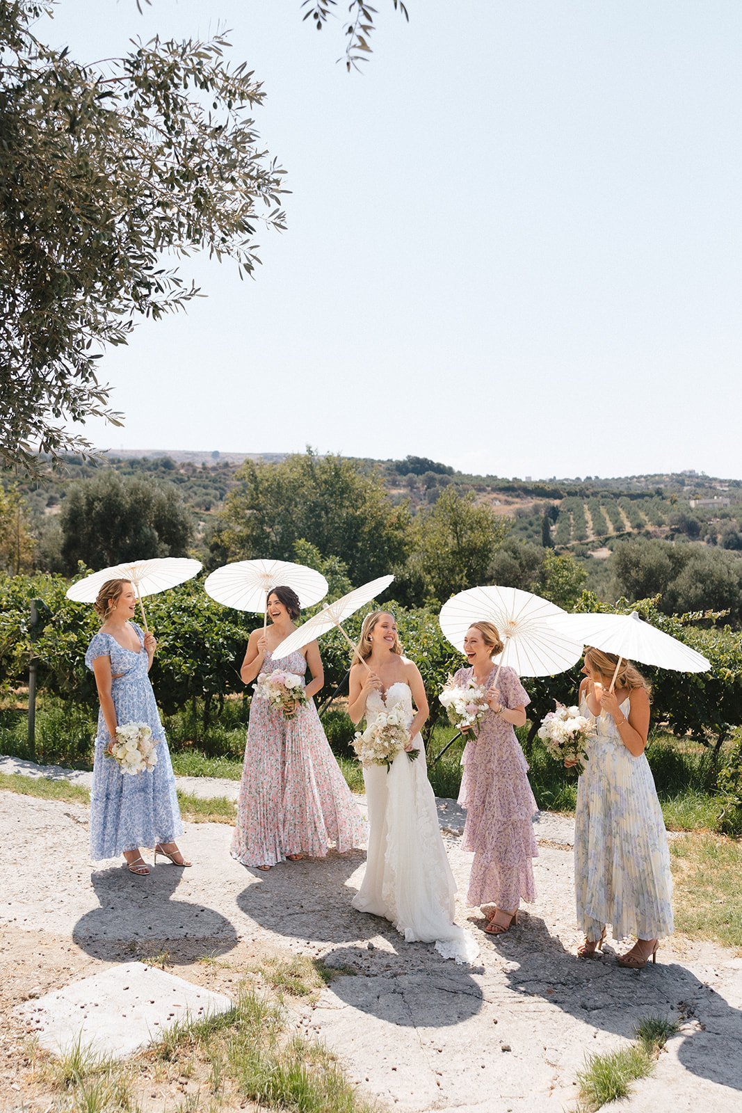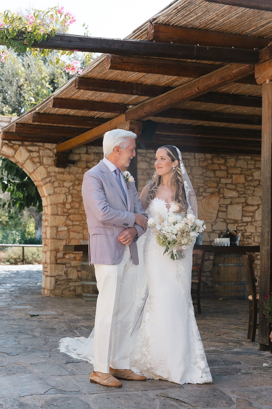 Paige and Spiro’s wedding was a breathtaking celebration held last August at Agreco Farm, one of Crete’s most beloved wedding venues. Surrounded by traditional Cretan charm, lush landscapes, and panoramic views, the setting brought together guests from America, Cyprus, and Greece for an unforgettable destination celebration. The day began with emotional preparations filled with laughter and anticipation, including touching first-look moments between Paige and her father and later with Spiro. The outdoor ceremony embraced soft pastel tones and elegant floral arrangements, creating a romantic and refined atmosphere. With thoughtful details like fans and parasols for guests and the serene beauty of Agreco as the backdrop, their vows were exchanged in a moment full of love, tradition, and joy.