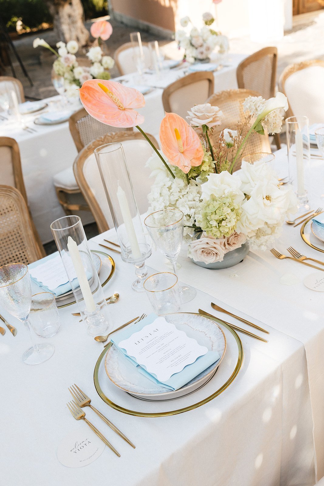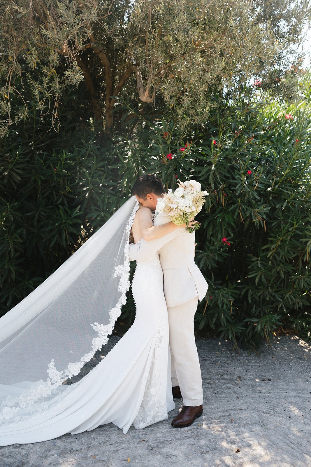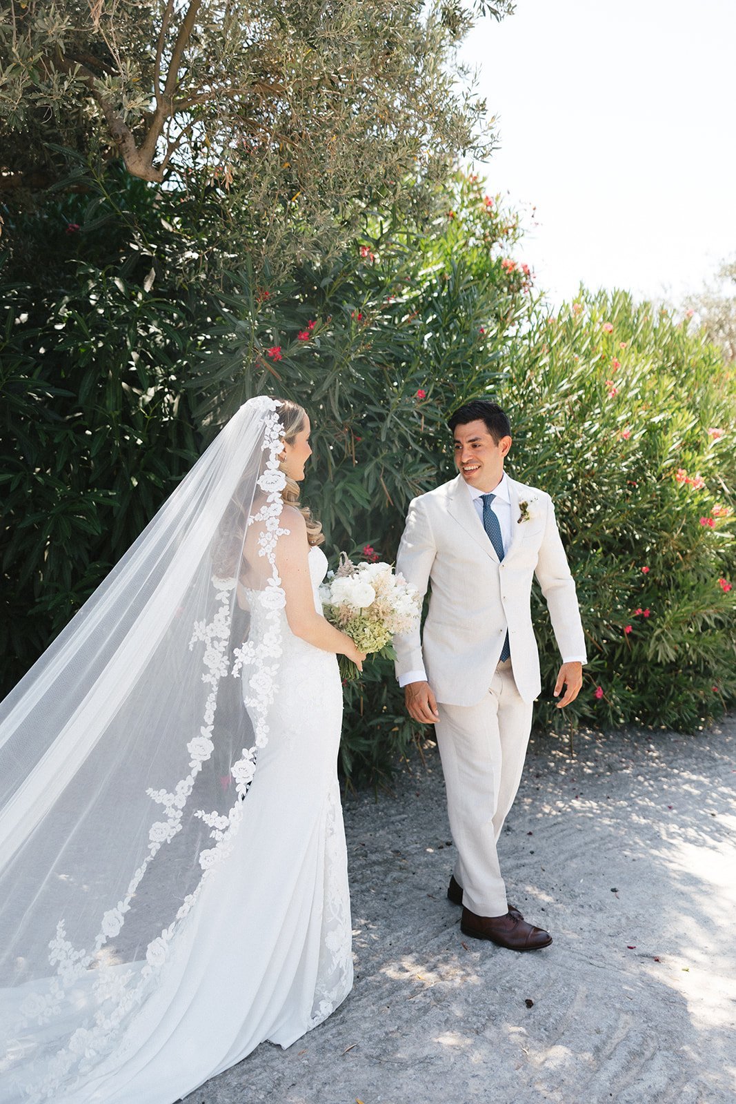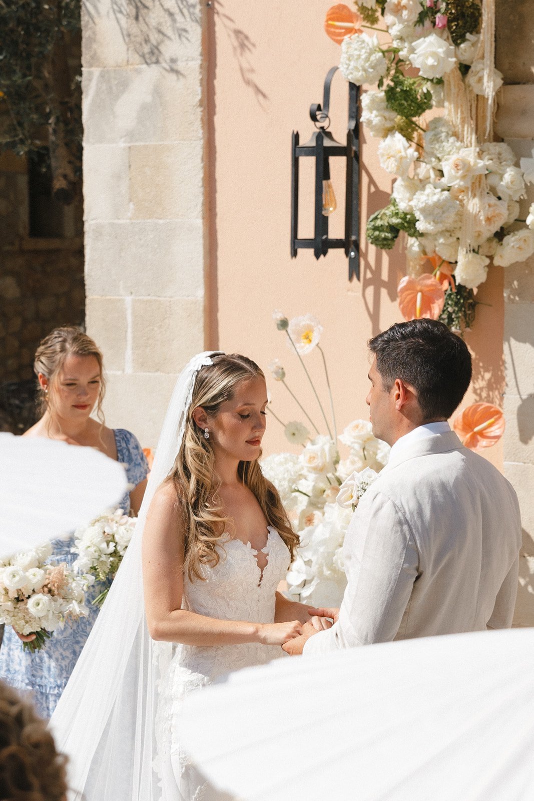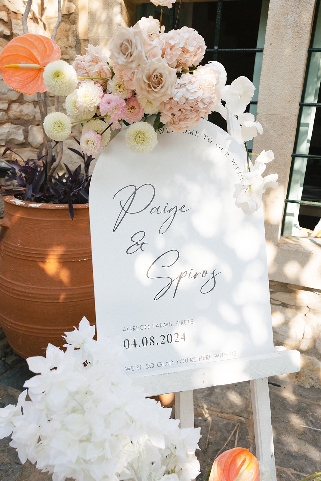 Paige and Spiro’s wedding was a breathtaking celebration held last August at Agreco Farm, one of Crete’s most beloved wedding venues. Surrounded by traditional Cretan charm, lush landscapes, and panoramic views, the setting brought together guests from America, Cyprus, and Greece for an unforgettable destination celebration. The day began with emotional preparations filled with laughter and anticipation, including touching first-look moments between Paige and her father and later with Spiro. The outdoor ceremony embraced soft pastel tones and elegant floral arrangements, creating a romantic and refined atmosphere. With thoughtful details like fans and parasols for guests and the serene beauty of Agreco as the backdrop, their vows were exchanged in a moment full of love, tradition, and joy.