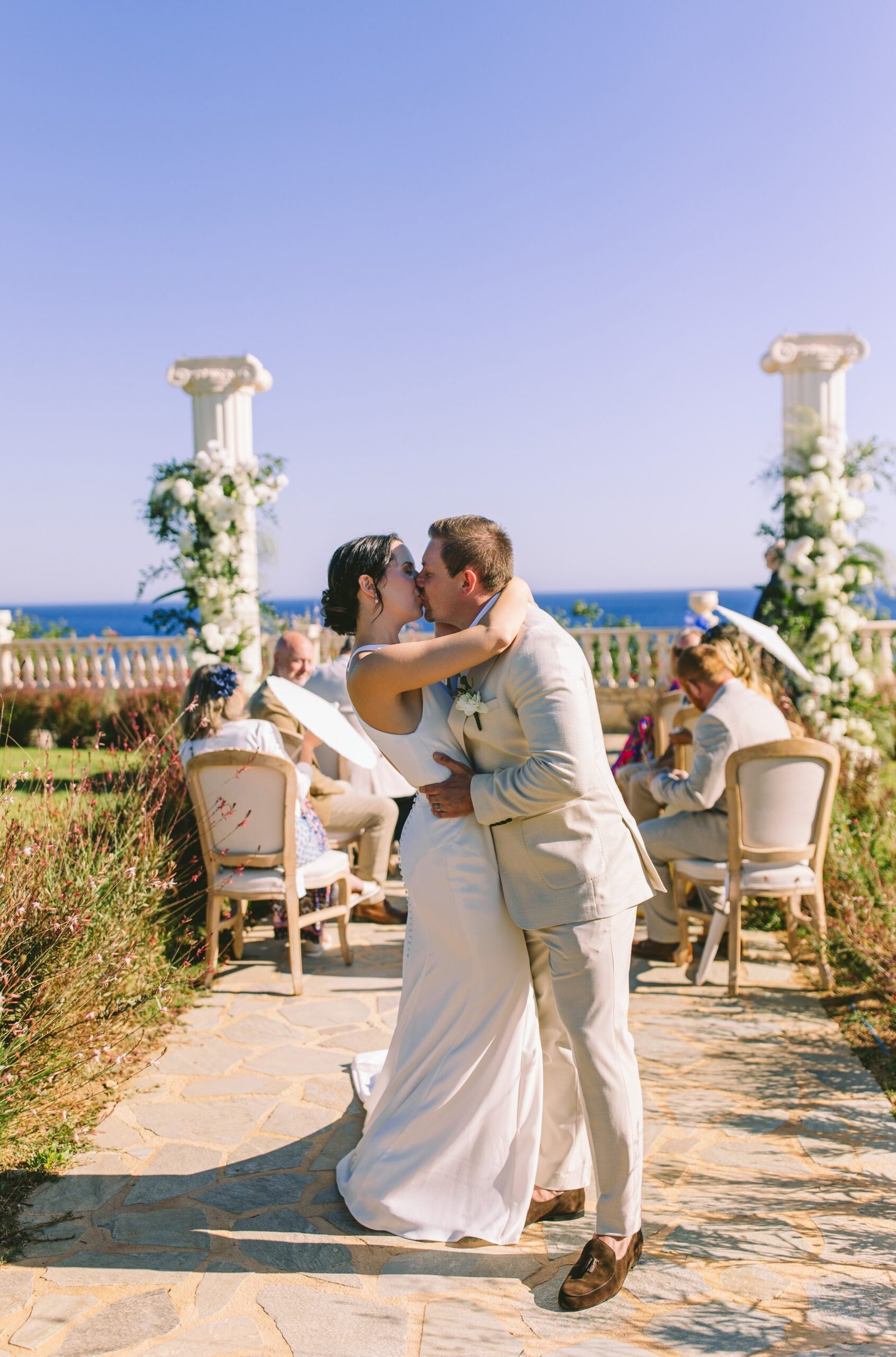 At the beginning of this season, we had the pleasure of planning Ross and Rachel’s intimate wedding. Α small and personal celebration with only nine of their closest people. It took place at a private seaside villa, where the calmness of the surroundings set the perfect tone for the day.
