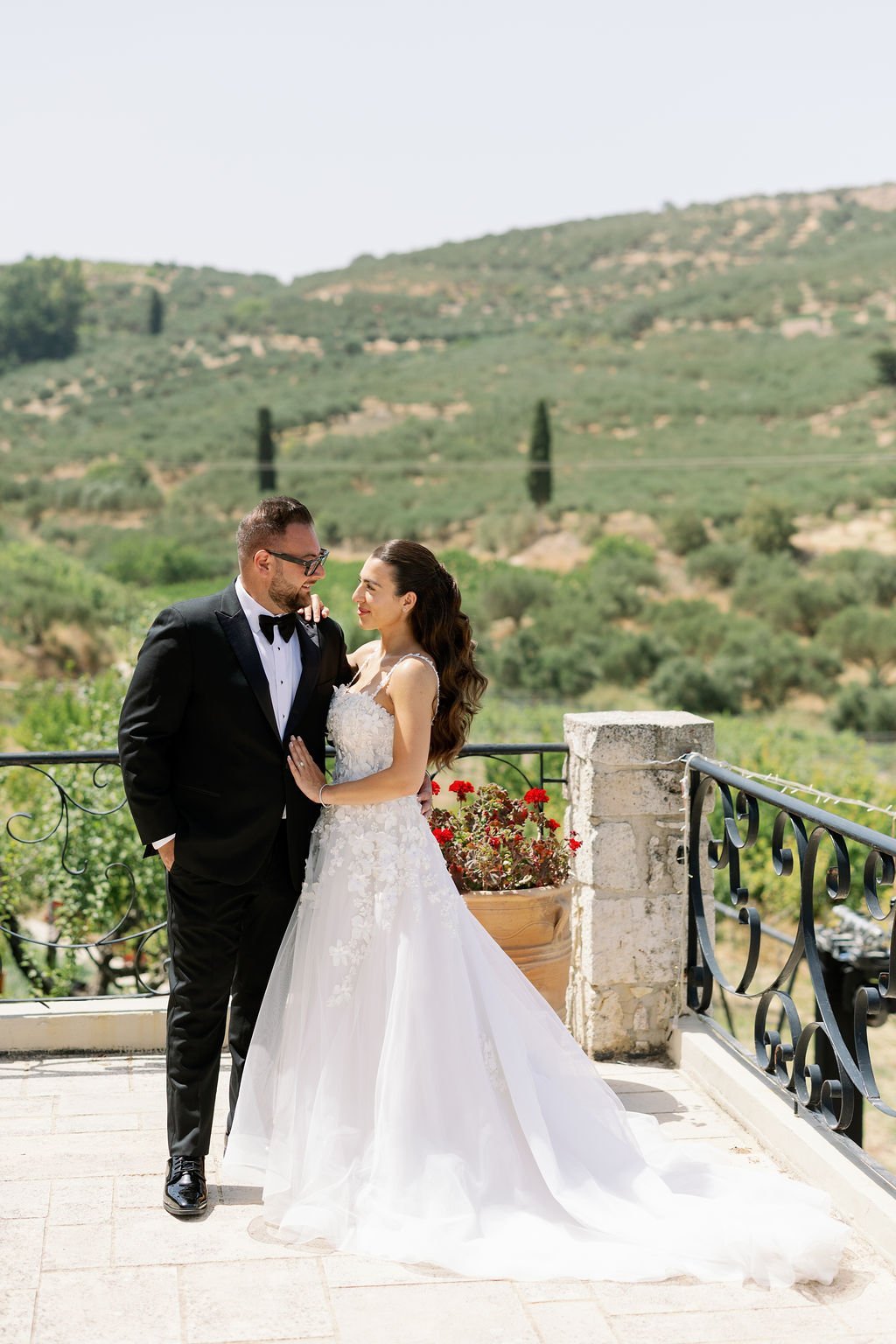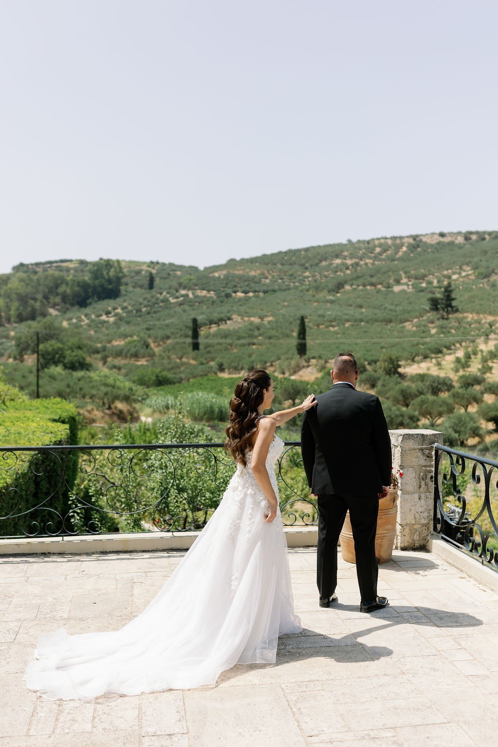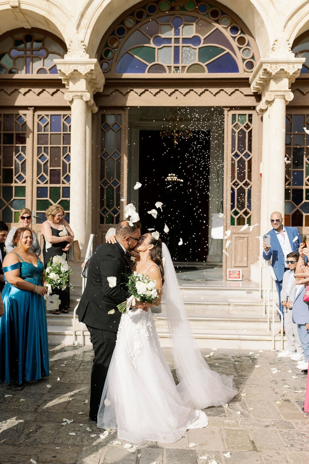 Roula and Chris traveled to Crete for a destination wedding that beautifully honored their Orthodox faith while embracing the island’s natural charm and history. Their day began with quiet, emotional preparations at their private villa, where they got ready separately, surrounded by family and close friends, the air buzzing with anticipation. Sunlight poured through the windows as Roula slipped into her elegant gown and Chris shared laughs and heartfelt moments with his loved ones before the celebration moved to the magnificent Church of Agios Minas in Heraklion. Inside the grand Byzantine cathedral, beneath frescoes and glowing icons, they took part in timeless Orthodox rituals—the exchange of rings and the crowning with stefana—while hymns echoed through the space, creating a deeply spiritual and emotional ceremony that united not just the couple, but their families too.