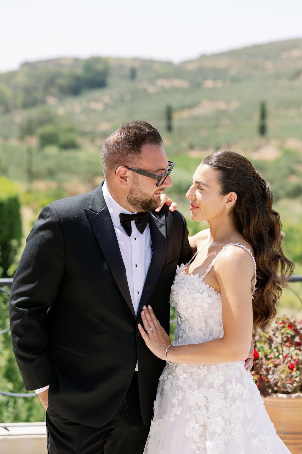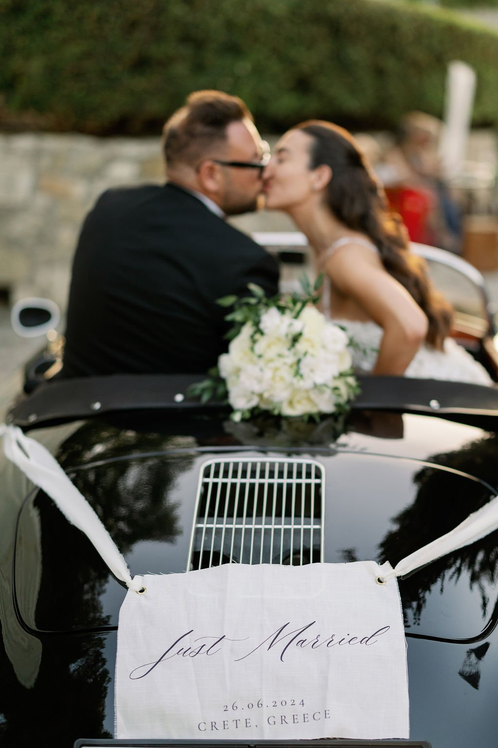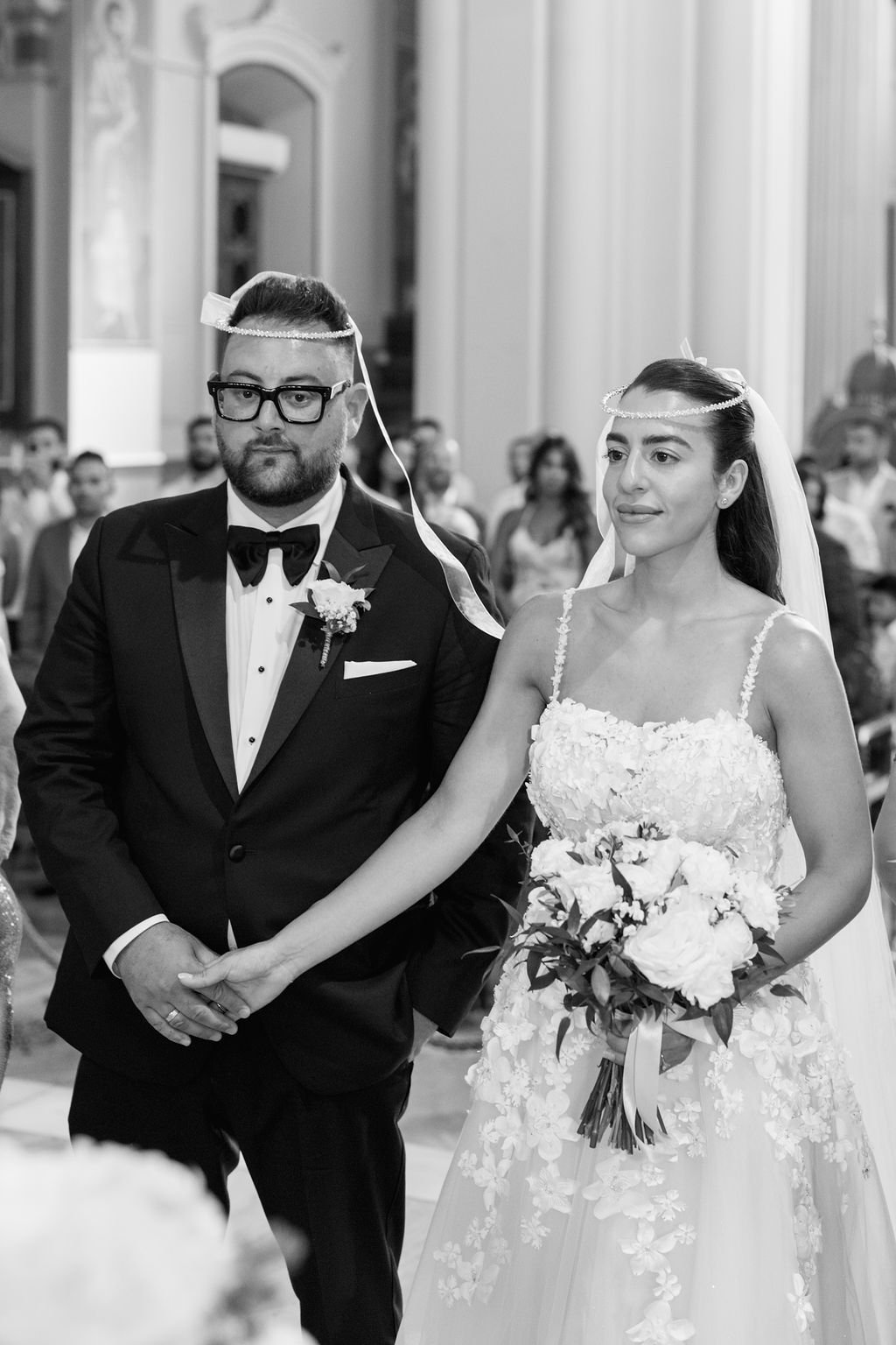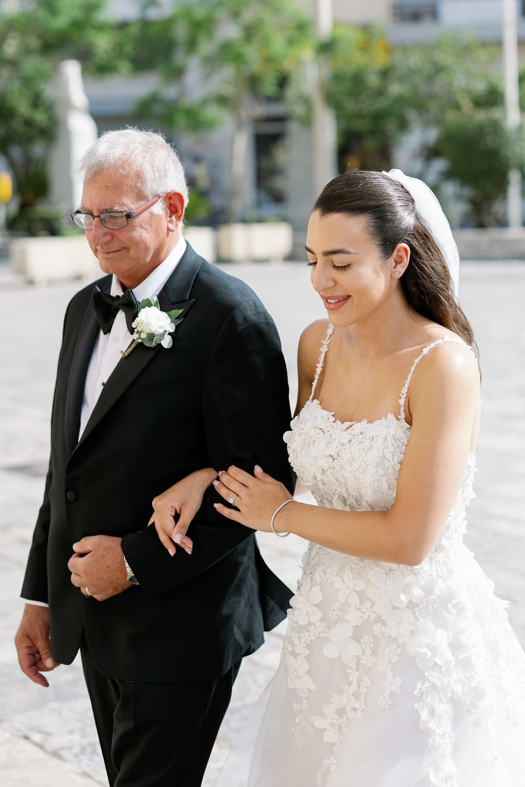 Roula and Chris traveled to Crete for a destination wedding that beautifully honored their Orthodox faith while embracing the island’s natural charm and history. Their day began with quiet, emotional preparations at their private villa, where they got ready separately, surrounded by family and close friends, the air buzzing with anticipation. Sunlight poured through the windows as Roula slipped into her elegant gown and Chris shared laughs and heartfelt moments with his loved ones before the celebration moved to the magnificent Church of Agios Minas in Heraklion. Inside the grand Byzantine cathedral, beneath frescoes and glowing icons, they took part in timeless Orthodox rituals—the exchange of rings and the crowning with stefana—while hymns echoed through the space, creating a deeply spiritual and emotional ceremony that united not just the couple, but their families too.