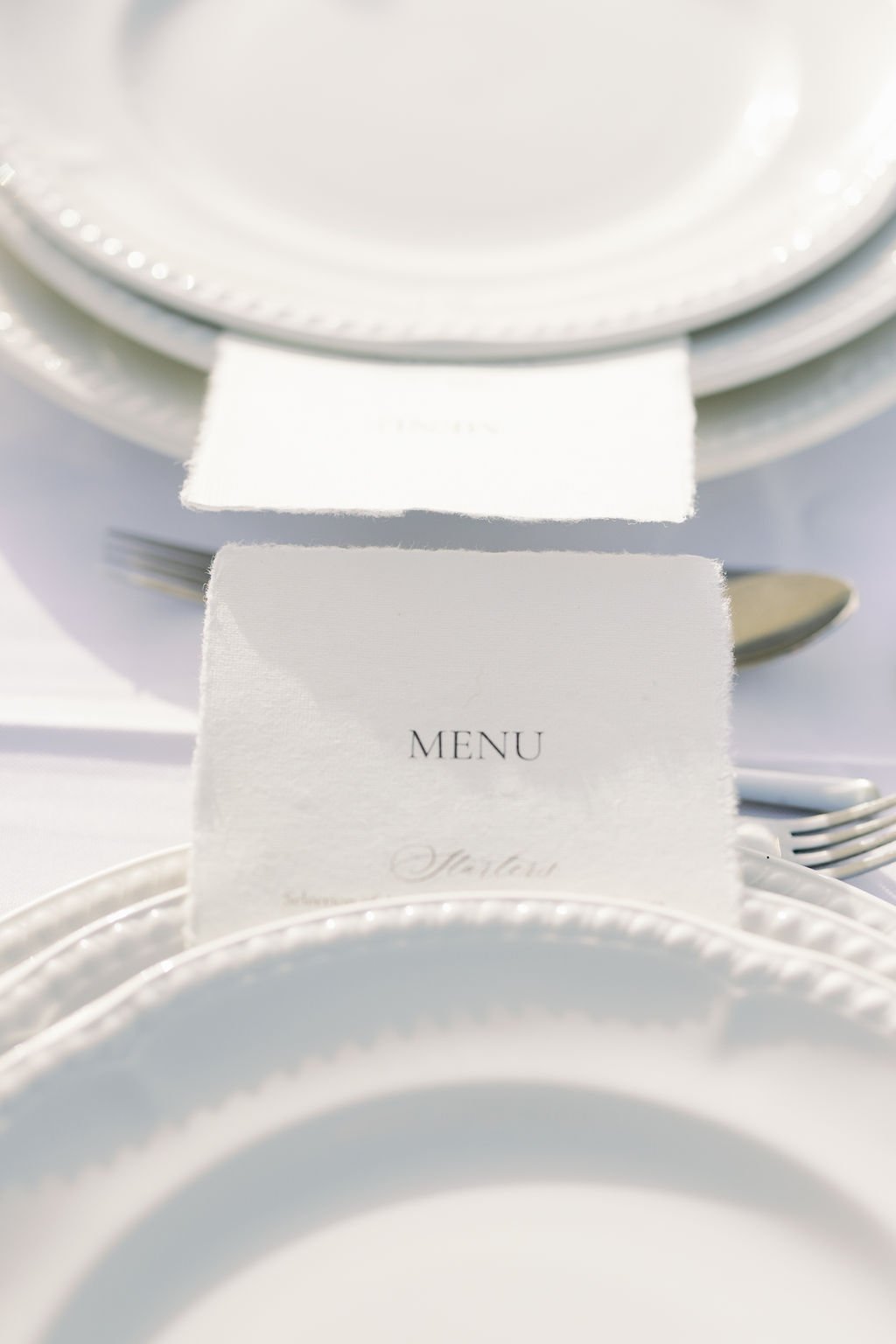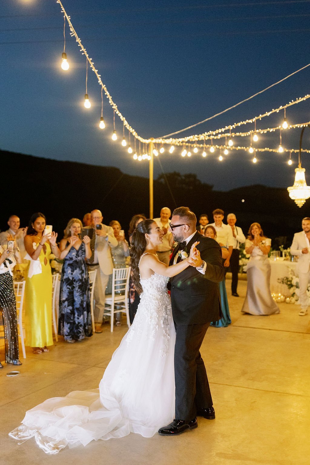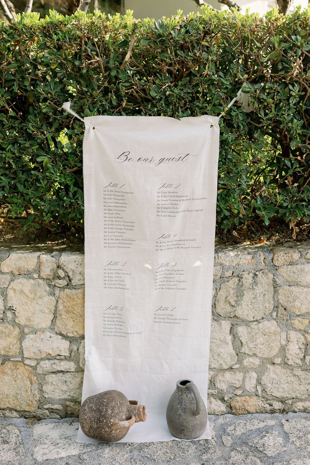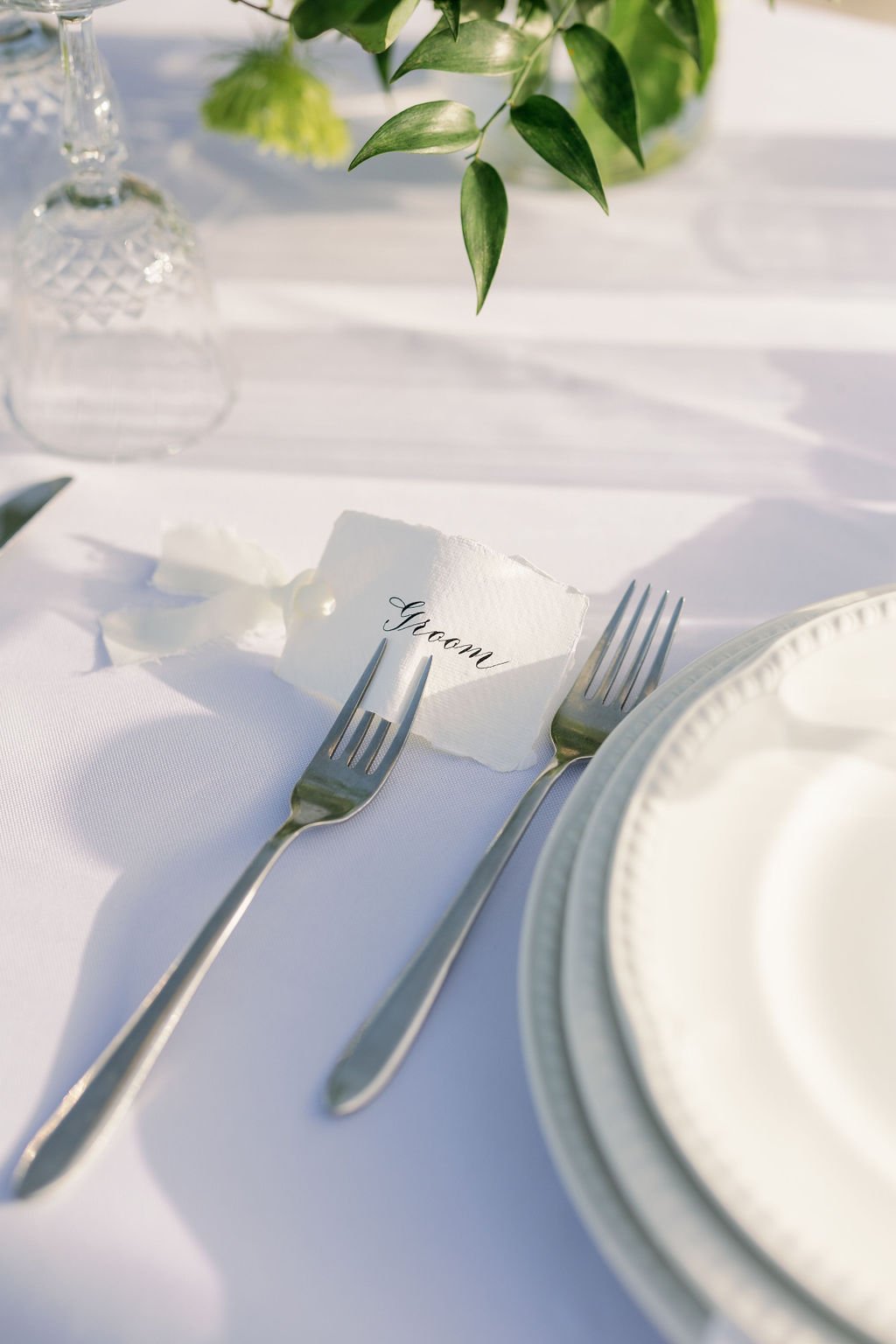 After the ceremony, guests returned to Mantillari Estate, where the villa had been transformed into a refined yet romantic reception space filled with white florals, candlelight, and soft overhead lighting that mimicked a starlit sky. Personalized menus and name cards added thoughtful touches, while the warm glow of the décor created an inviting, intimate atmosphere for dinner and celebration. Planned and coordinated by The 25 Project, the evening flowed effortlessly from heartfelt toasts to joyful dancing, blending tradition with modern elegance in a way that felt completely personal to Roula and Chris. From sacred church vows to a chic garden party under the lights, their wedding was a seamless, love-filled tribute to culture, family, and the magic of saying “I do” in Crete.