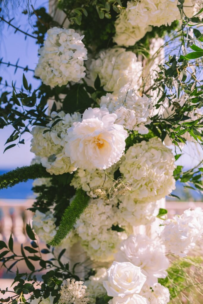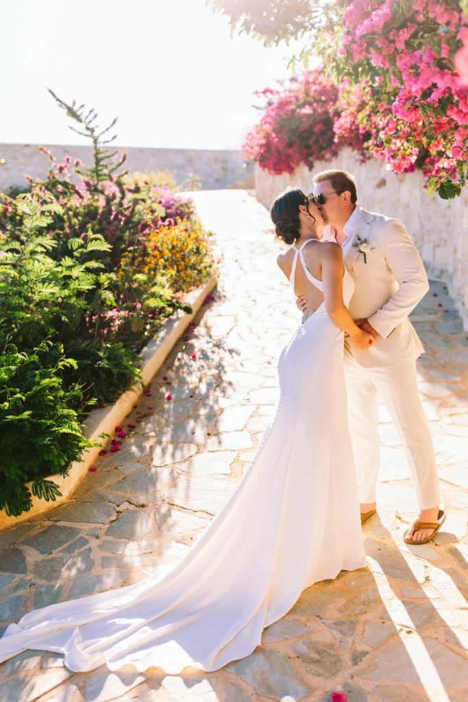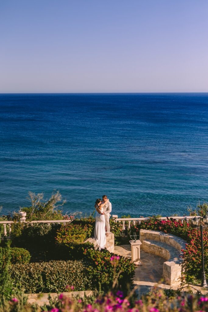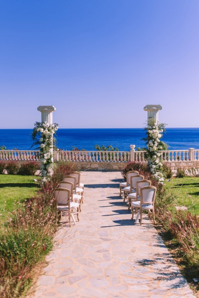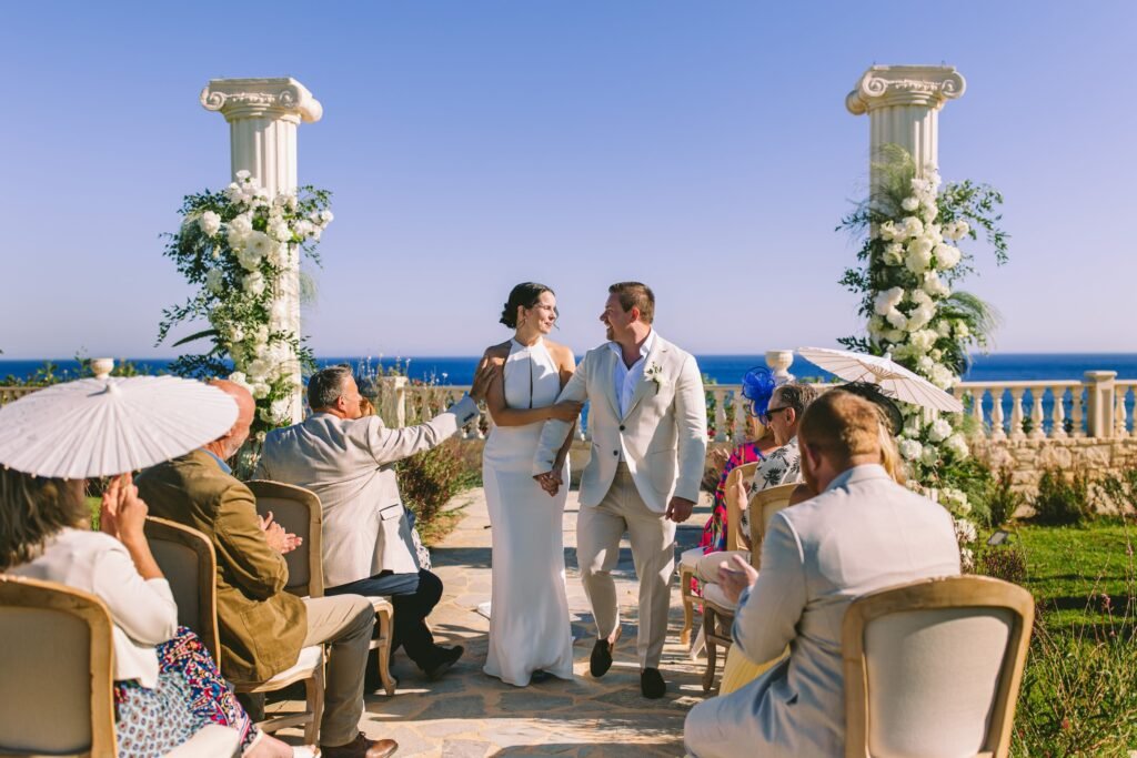 At the beginning of this season, we had the pleasure of planning Ross and Rachel’s intimate wedding. Α small and personal celebration with only nine of their closest people. It took place at a private seaside villa, where the calmness of the surroundings set the perfect tone for the day.