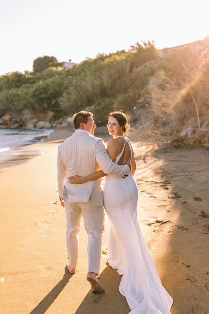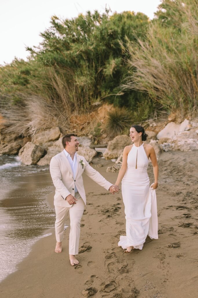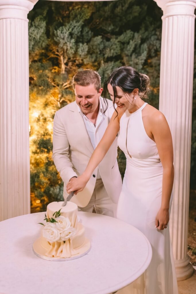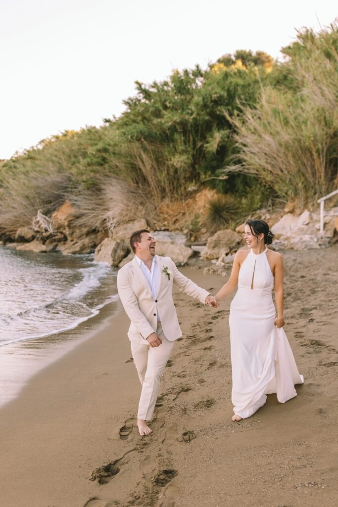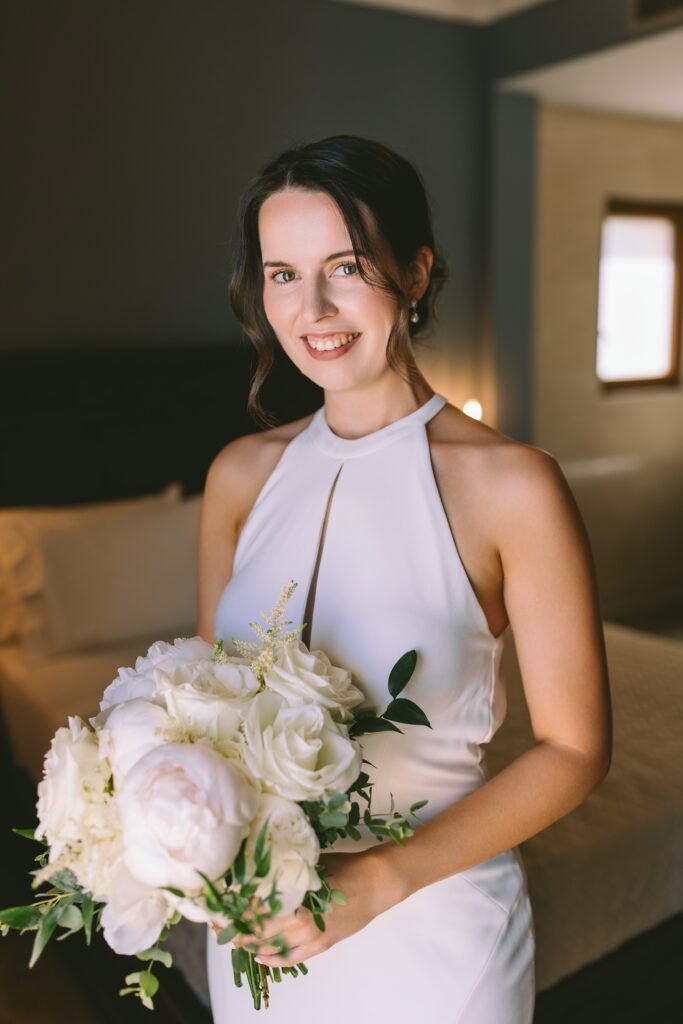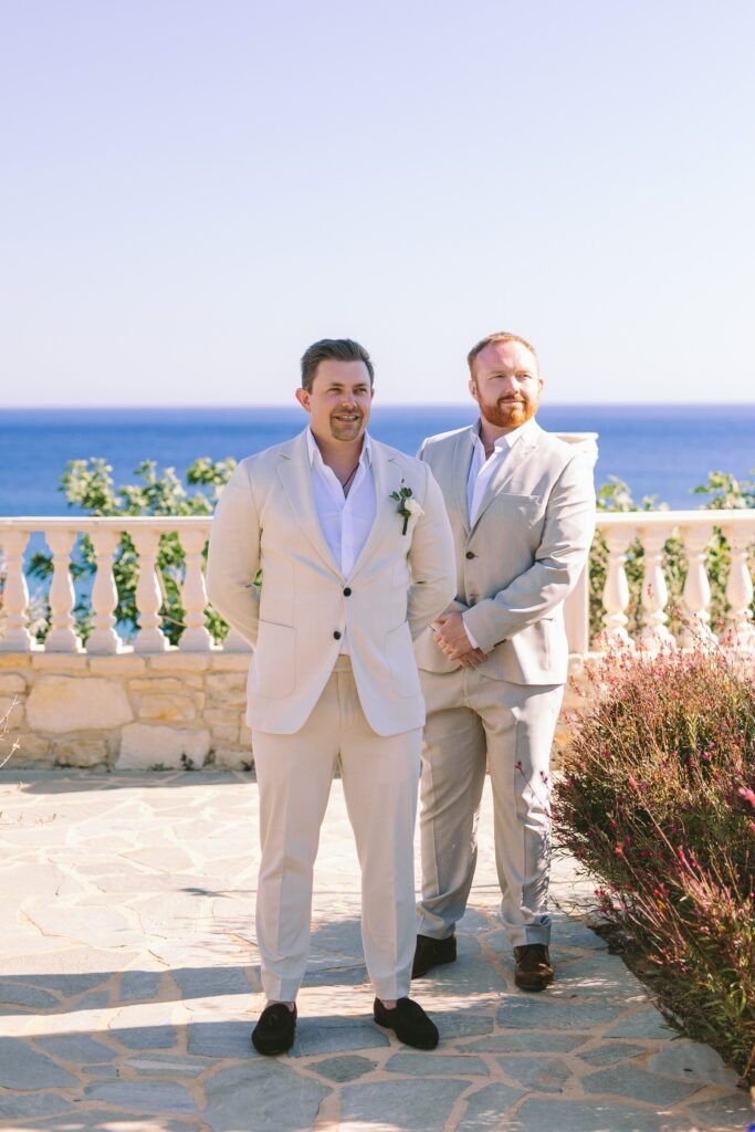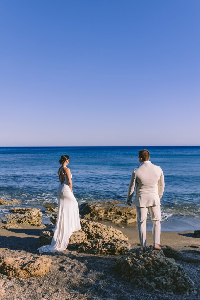 The couple wanted everything to feel simple, relaxed, and natural. The villa itself needed very little styling; its clean architecture, the proximity to the sea, and the soft Mediterranean light did most of the work. We focused on creating a smooth flow for the day, nothing staged, nothing excessive.